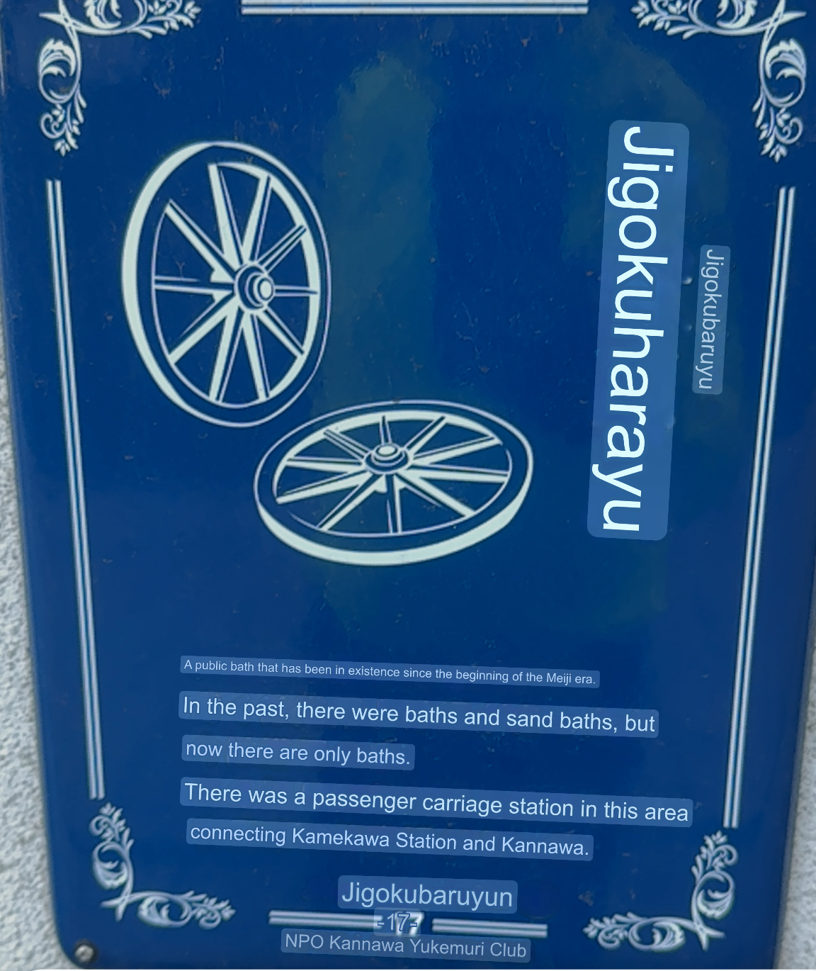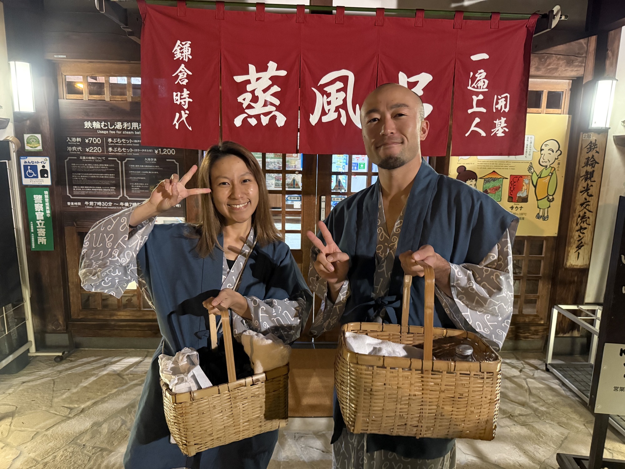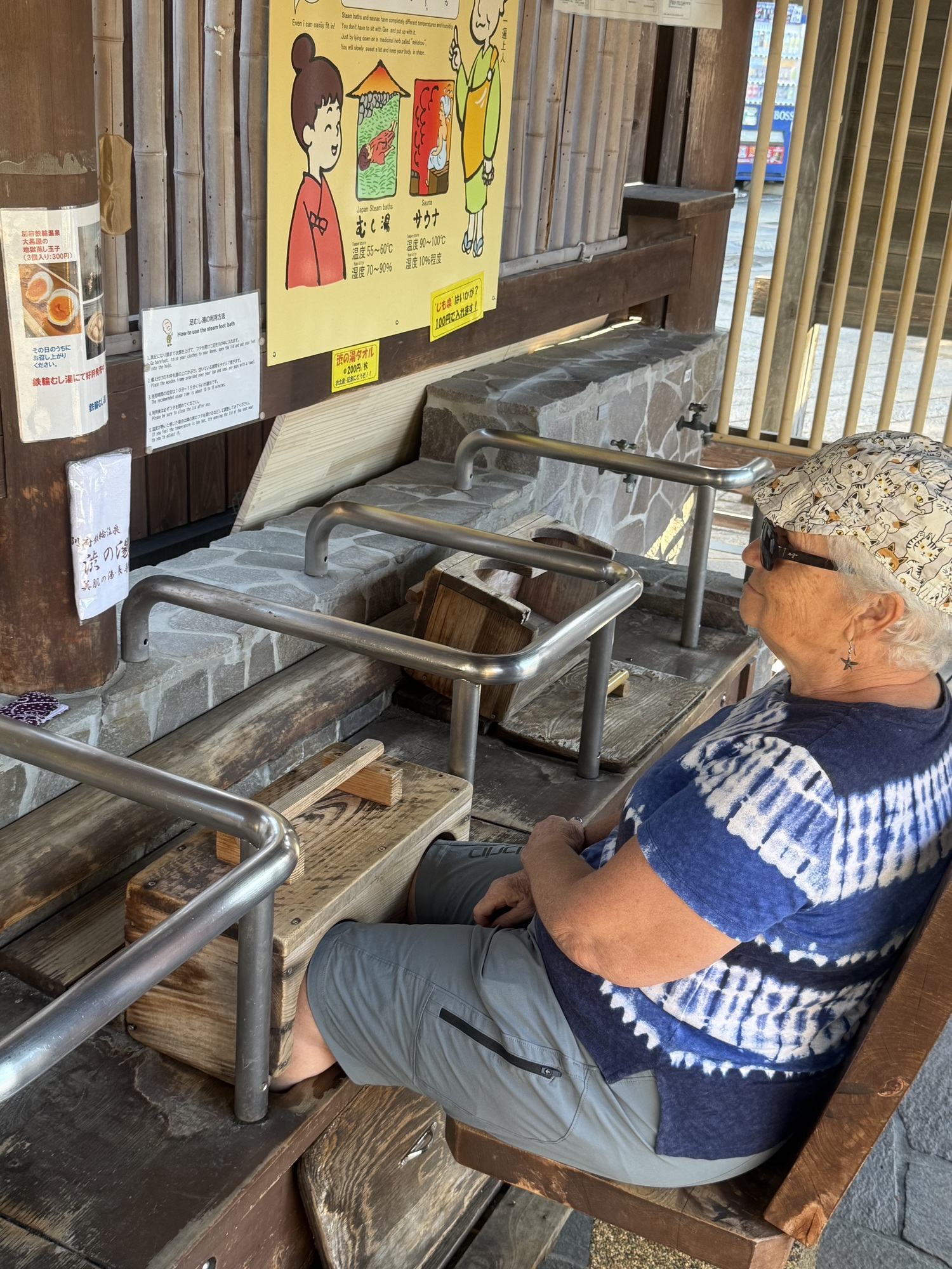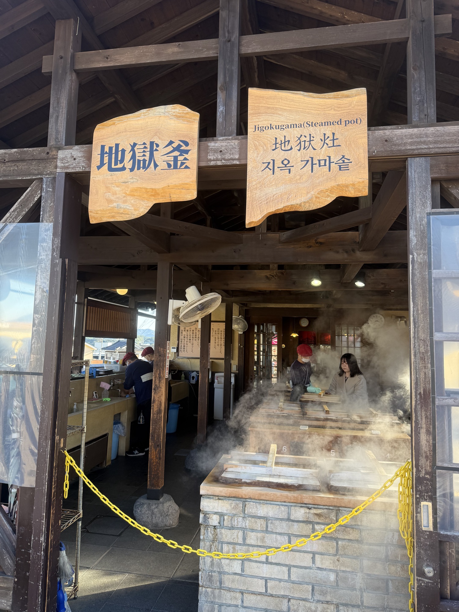 This is our final stop of the day. We are planning to visit this Onsen which is a steam bath. The two small sections at the front are separate areas for men and women. Only 3 people can fit in the area at a time and you are restricted to 10 minutes max.
