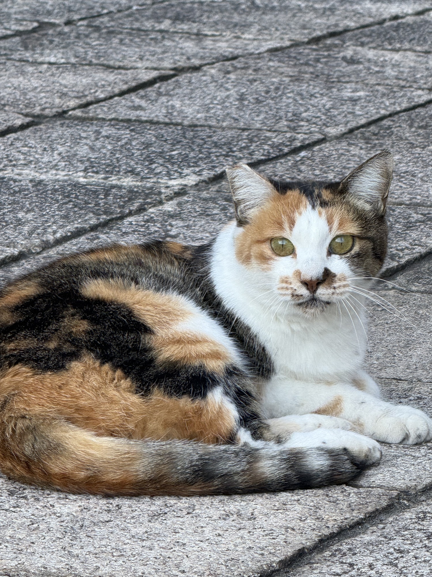 Cats are a frequent sight in Beppu. Many are cherished pets but there are also many wild cats who benefit from the kindness of locals who feed them. This lovely cat is beautiful…well groomed and a bit chubby.