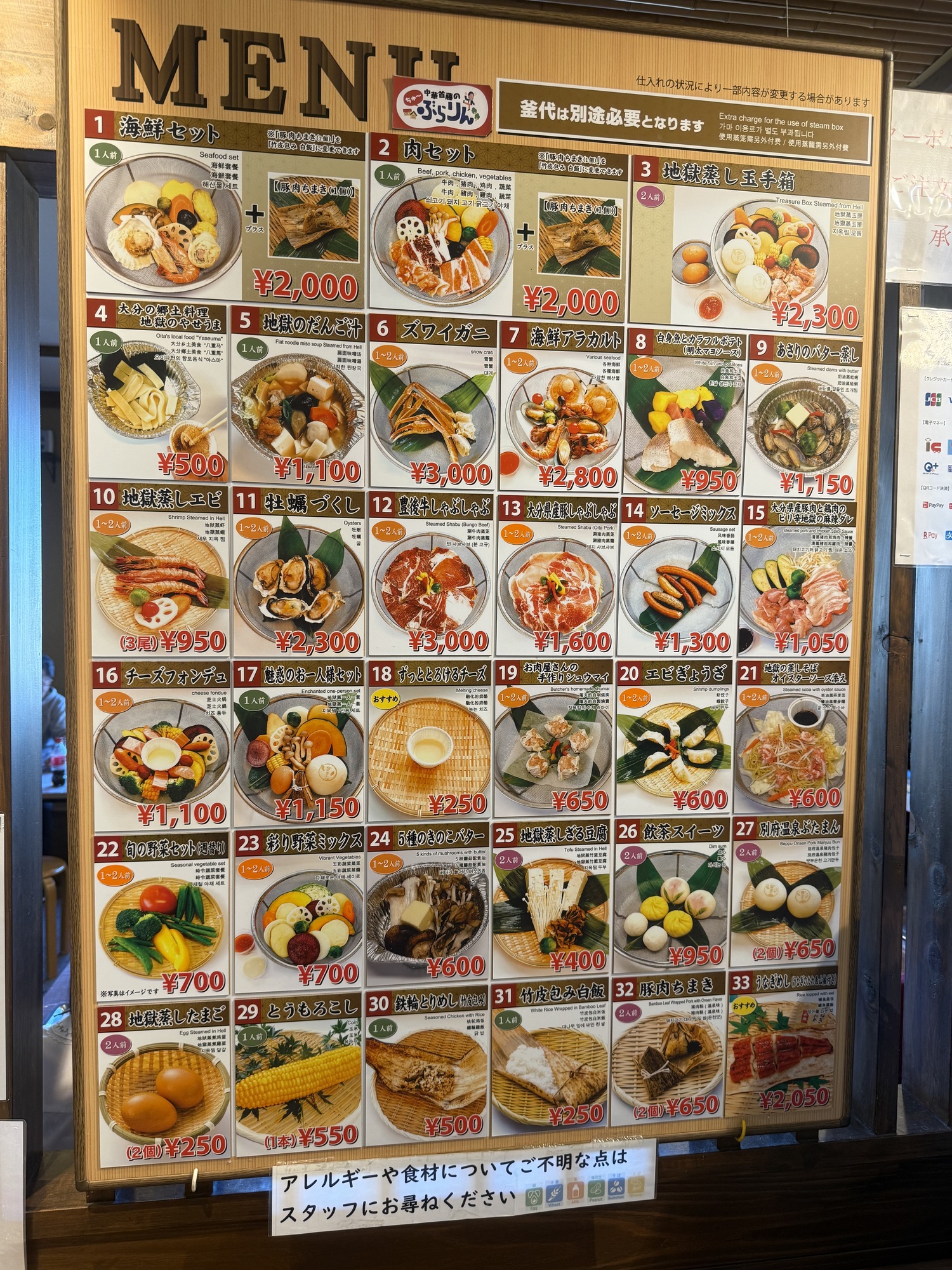 Patrons at the restaurant that steams your food participate in the process. Opening hours varied and we were a bit frustrated that we couldn’t find one open when we went out to eat.