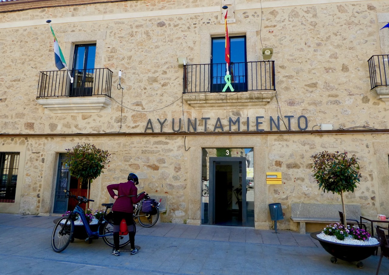 After a short climb out of Plasenzuela, our route joined EX381 for the last miles to Trujillo. It was narrow, winding road with modest traffic through a fairly uninteresting landscape. By then, my mind was consumed with issues that needed attending once I’d arrived in Trujillo – briefly, my credit card had been rejected at our Cáceres hotel, my eSim account was blocked and I couldn’t top up; and my online French classes were starting again that night. It was with great relief that we finally arrived at our Parador in Trujillo.