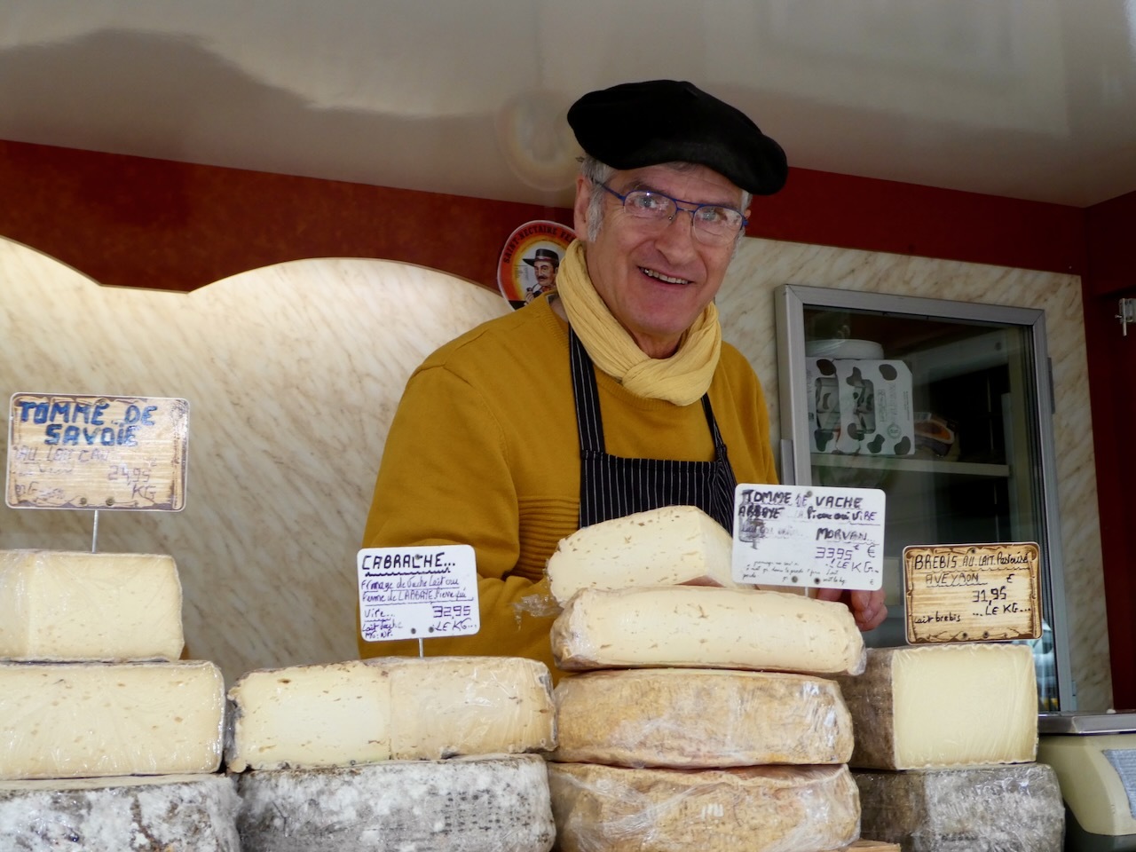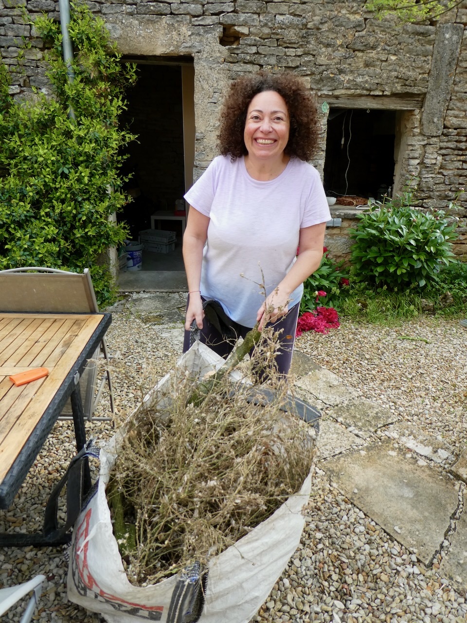 I’d been around a fair amount of tree cutting in my past – a woodstove was the primary heat source when I was in graduate school and we had our own woodlot to source the fuel. Many weekends were spent chopping down and trimming trees, cutting and hauling logs, and splitting wood. Today I left all the cutting and trimming to Alex, but I had lots advice that he took with good cheer. We were a merry crew, and soon all the bits were bagged and loaded into the truck. Carla and I made a quick trip to the Wednesday market for sheeps-milk yogurt and then it was off to Auxerre to put me on the train back to Paris.