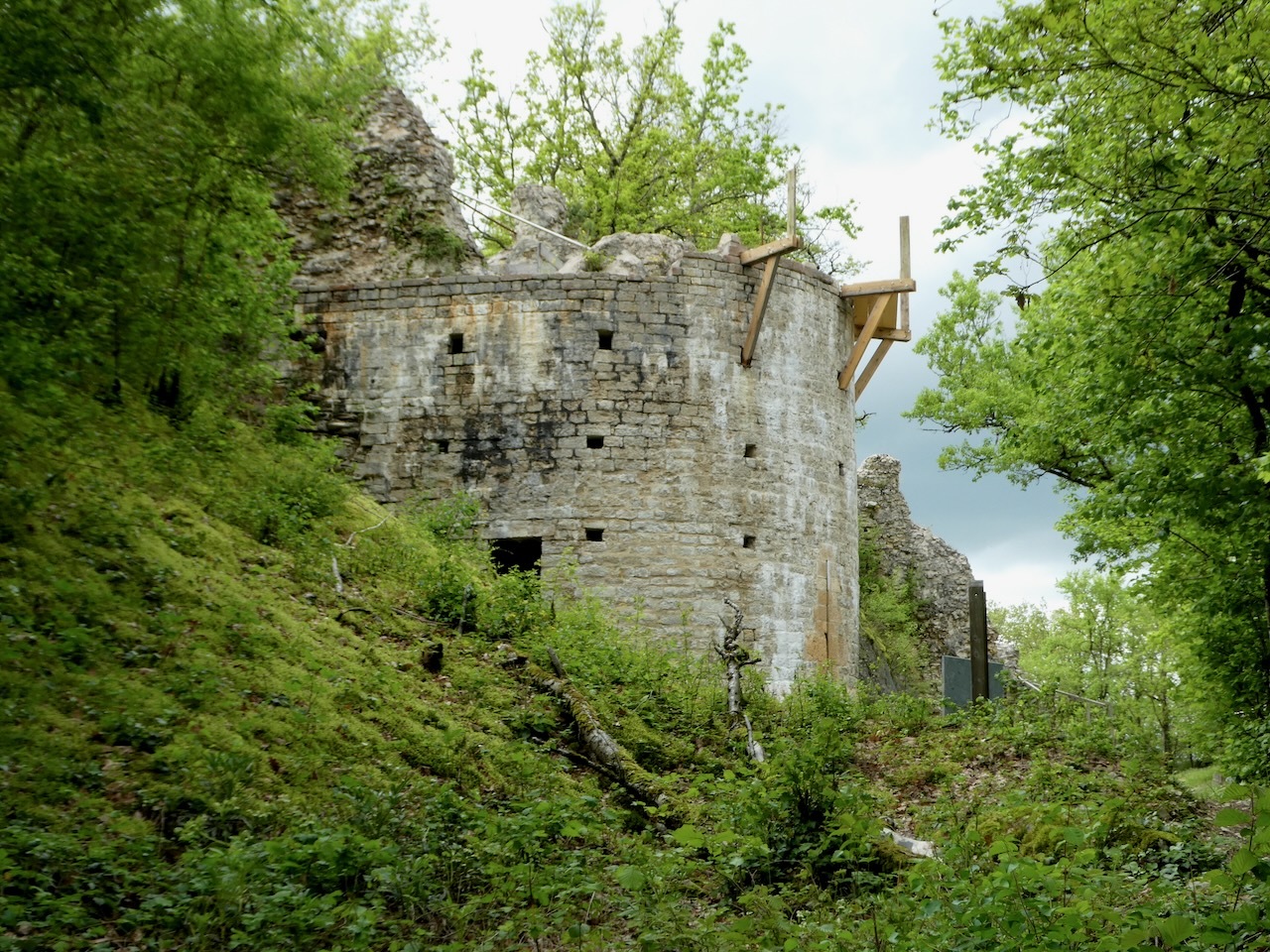 Largely forgotten for centuries, the ruins of the once formidable castle sit in a wooded hillside above the medieval village. In 1998, a group of volunteers formed The Forgotten Heritage - Association of the Old Castle of Noyers for the purposes of bringing new life to the castle. In addition to restoration of the two towers, projects include the development of signed walking paths and promotion of cultural activities. The latter includes sponsoring the annual Gargouillosium, a contest where 20 sculptors from all over France are allotted three days to create gargoyles from designated stones.