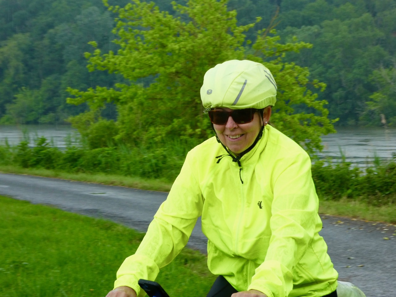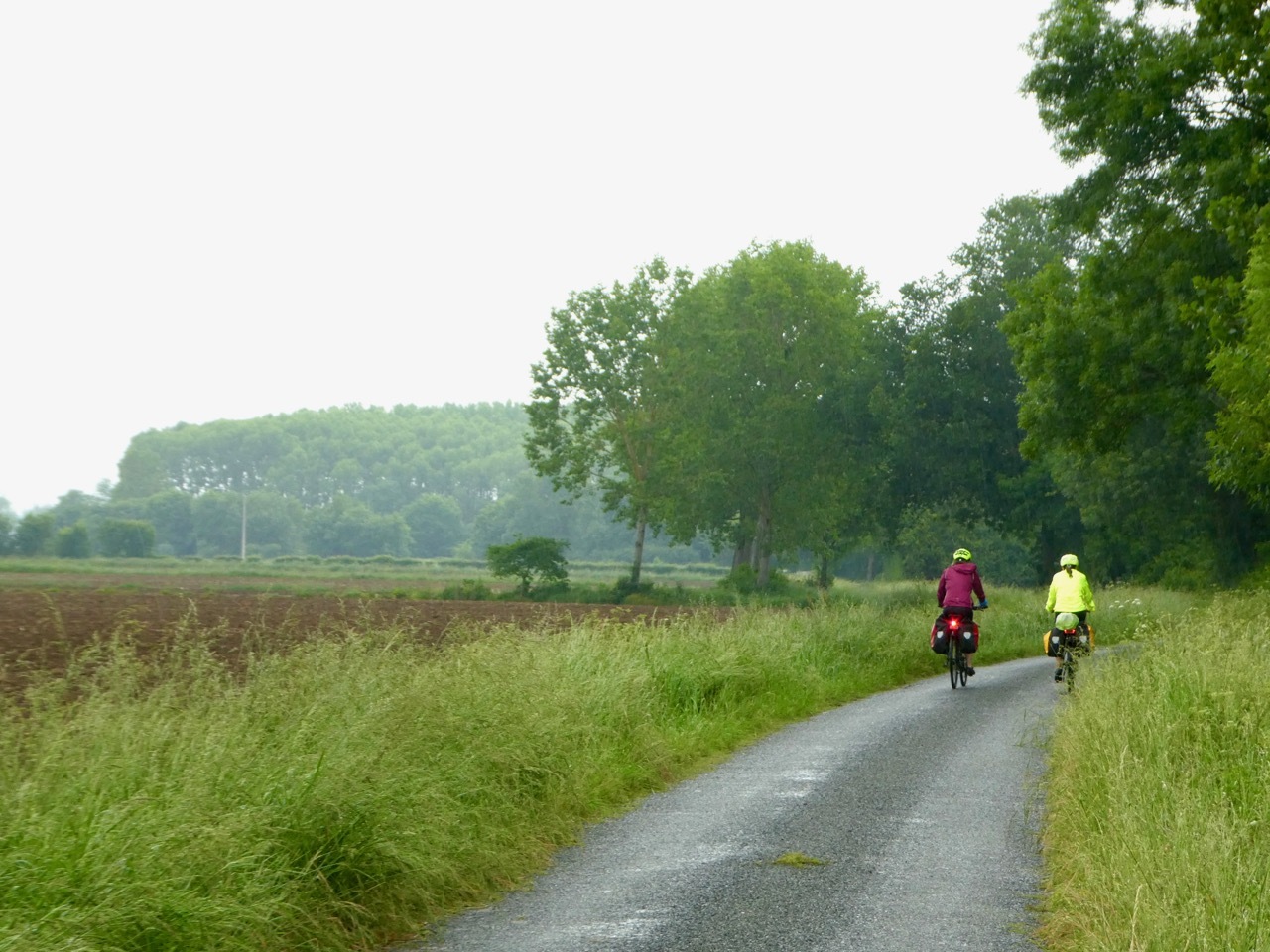 The cycling portion of Raleigh Does France began today and Leah and Susie were pumped, not a bit deterred by the predictions for daily rain showers. There was a great breakfast spread at Hôtel Life BG, a nice little hotel with a hostel vibe and a very helpful staff. We left under cloudy skies, crossing the Garonne and heading east on the Roger Lapébie cycle path. It was the third time I’ve cycled that stretch along the Garonne, and it was as enjoyable as ever.