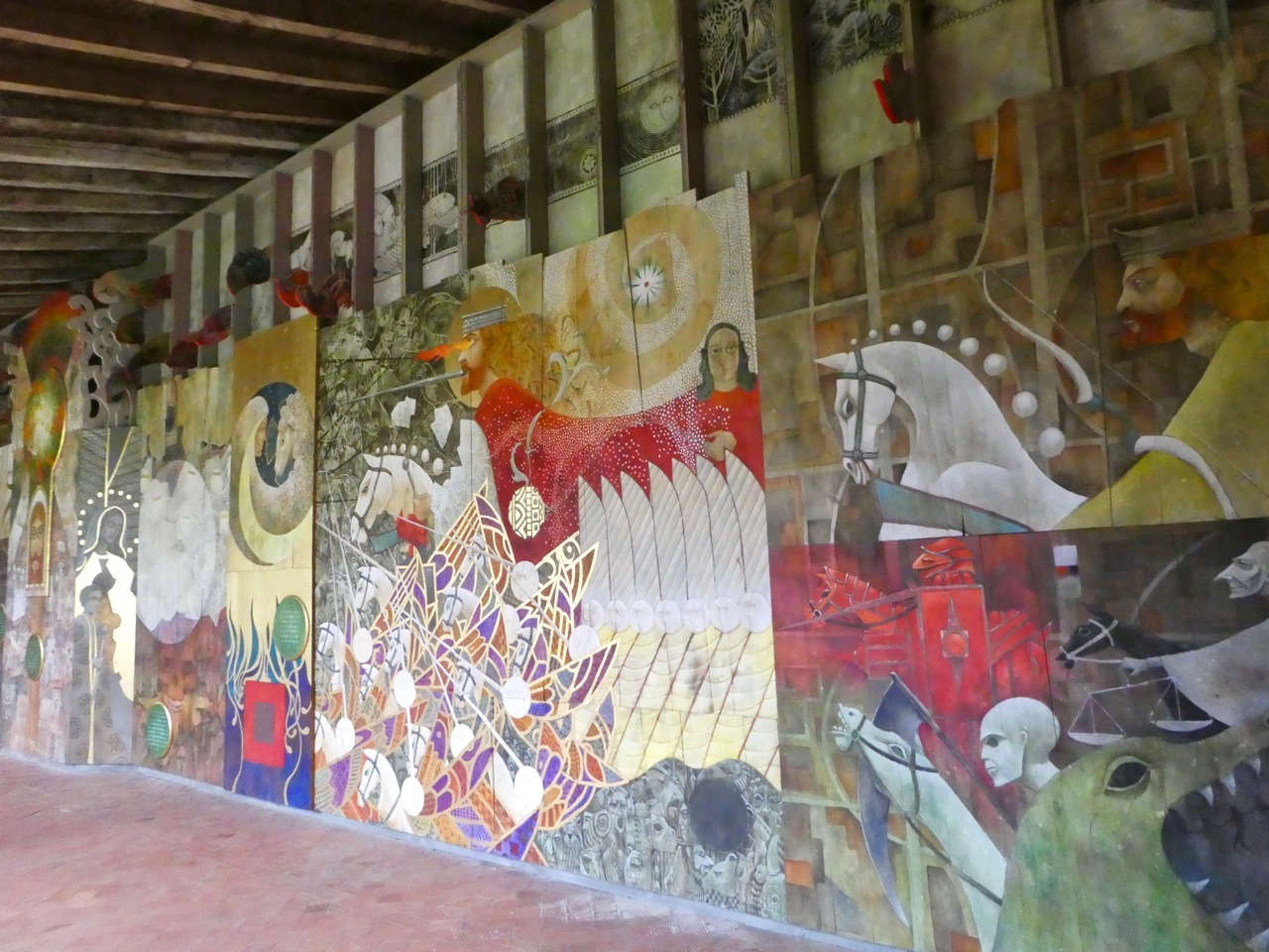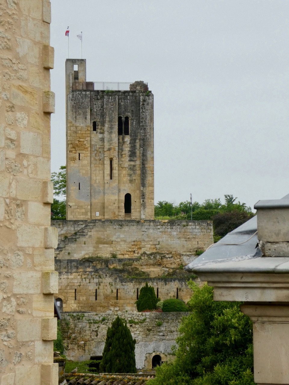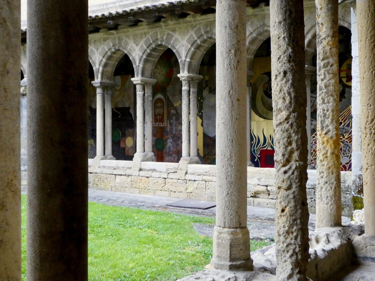 Susie and I continued to wander about the town – hitting the major sites such as La Tour du Roy and the monolithic church and its bell tower. Turning down a passageway, we stumbled into the Cloîtres des Cordeliers, where there was an art exhibit on one of the cloister walls. We met up with Leah at Chai Pascal where we enjoyed an excellent meal and toasted an outstanding first day on tour.