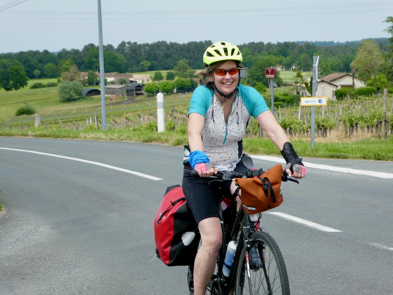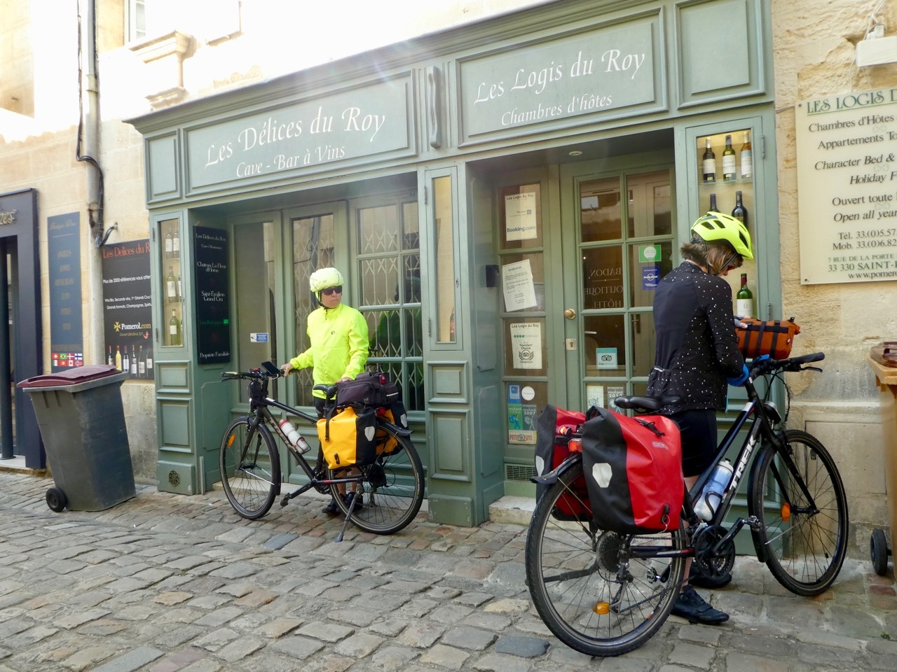 In Bergerac, we met our delightfully upbeat host Kti who showed us to our lodging for the night – a large two-bedroom apartment with a terrace and very well appointed kitchen and sitting room. It was an outstanding space. We headed over to the local Casino for after-ride snacks and breakfast fixings and then Leah and Susie went off to explore the town while I did some laundry and journaling. Dinner was at one of the few open restaurants, a small bistro near the square with mediocre food but a nice waitress. The rain began as we headed back to the apartment, perhaps a sign of things to come in the following days. We shrugged it off, content to enjoy a great day of cycling under mostly sunny skies.