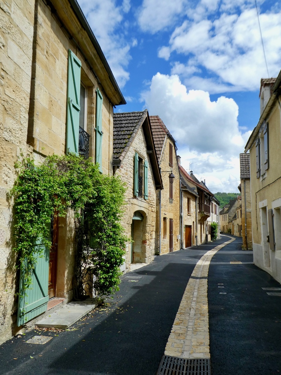Susie had picked up a bus schedule at the train station that morning, which indicated the next bus to Sarlat departed from Montignac at 4:24, more than an hour after we finished lunch. We split up and agreed to meet at the Tourist Information Office at 4 – I spent my time wandering around and taking photos while Susie and Leah browsed the local shops. We arrived at the bus stop at Place Touney about 4:10 and I confirmed with a storekeeper that this was indeed the stop for the bus to Sarlat. We waited patiently and bit anxiously as the minutes ticked by, noting more than once how prompt the buses had been. We were the only ones at the bus stop, and I wished for another rider to come by and reassure us that we had the right place and time.