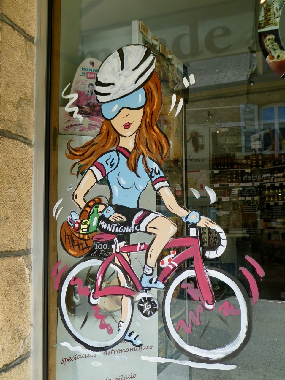 Our one hour English-language tour of Lascaux IV was scheduled for 11:10 and we planned to take an early bus from Sarlat, thinking it would give us time to explore the museum prior to our tour, leaving us the afternoon for a bike ride to Beynac if the weather was good. We had a little trouble finding the exact location of the bus stop and were dismayed when the bus pulled away just as we were running towards it, the driver shaking his right index finger back and forth in the universal signal of NO. The next bus was scheduled to originate at the train station 90 minutes later, so we wasted our time wandering through antique stores and drinking weak coffee.