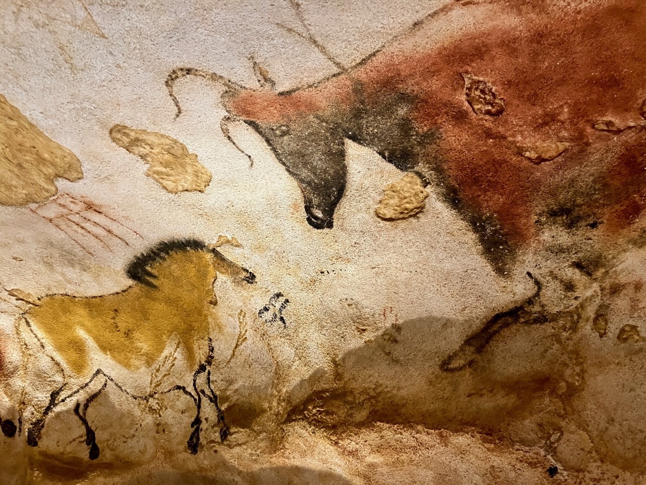 I visited Lascaux II in 2017 during a trip to Dordogne with my sister Ann and her husband Jack. It was one of the most memorable experiences of my life. Though I’d seen drawings of the Lascaux animals on gift cards and posters, I will never forget the shock and awe as our small group entered The Hall of Bulls and were engulfed by vivid depictions of horses, bulls, and deer. At the time, I wanted the more intimate experience of Lascaux II but I have since heard great things about Lascaux IV and thought that there might be additional information in the museum that would be of interest to Leah and Suzie.
