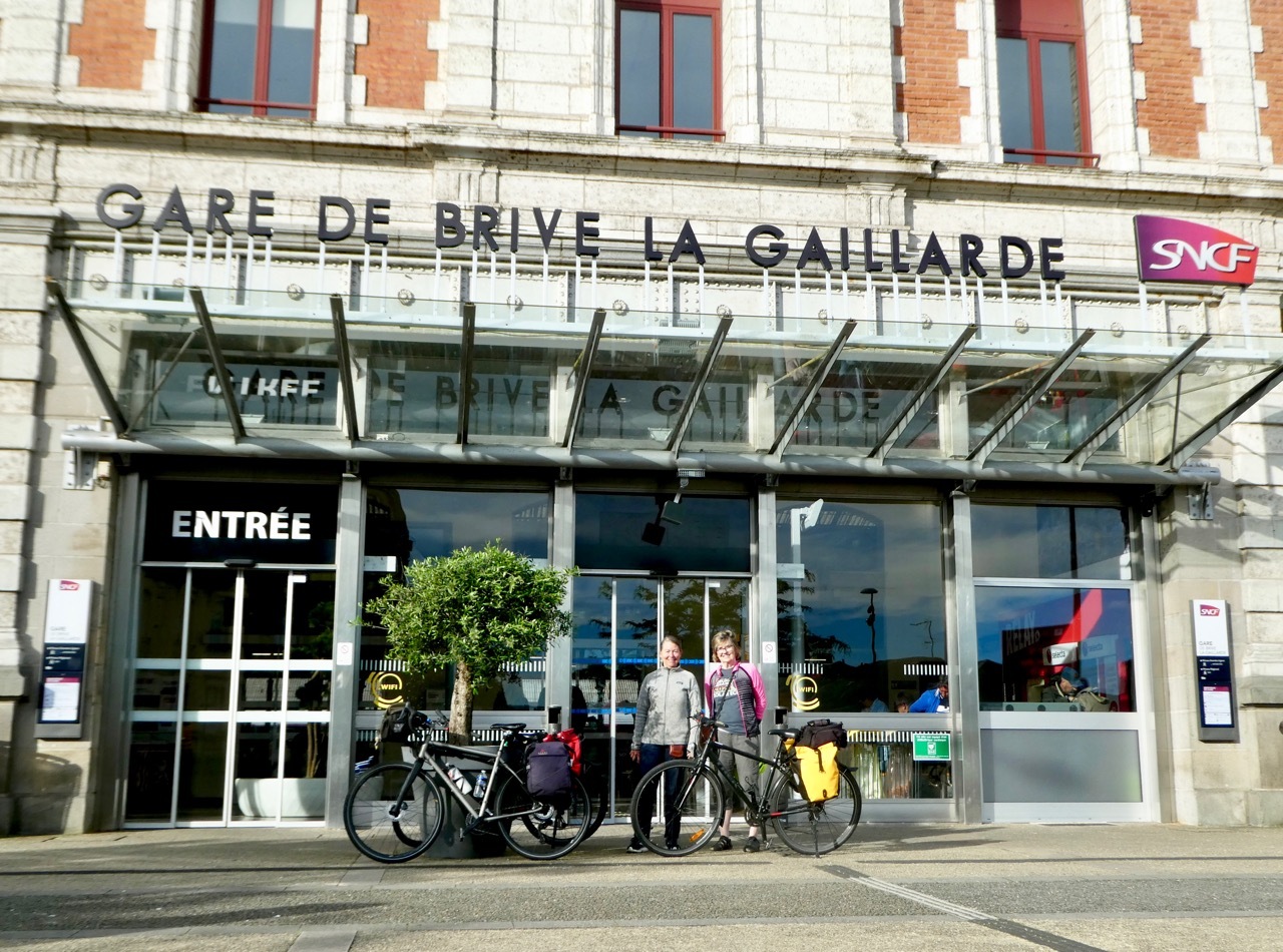 Today we returned to Bordeaux, taking the TER train from Brive with a connection in Perigeaux. On arriving at the Brive station, we met a couple from the UK who had just completed a cycle tour somewhat similar to ours, but arranged by a travel agency/bike rental outfit in Bordeaux. As the five of us waited together with bikes on the platform, the two-car train pulled into the station. Bike logos on each car indicated room for two bikes. The conductor, who had an eerie resemblance to Captain Kangaroo, barked that only four bikes were allowed on the train. Assuring him we had booked reservations with bikes, Leah and I loaded into one car while Susie joined the UK couple in the other car.