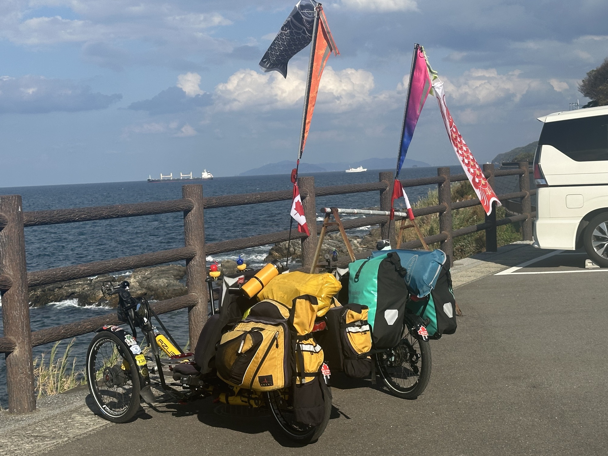 Today, we will head out to begin riding south along the Pacific Coast. When we complete this leg of our journey, we will have completely circumnavigated Kyushu and crossed through it twice. Kyushu has so much to offer…beautiful coastline with surfing opportunities, small islands, natural beauty and interesting towns and cities.