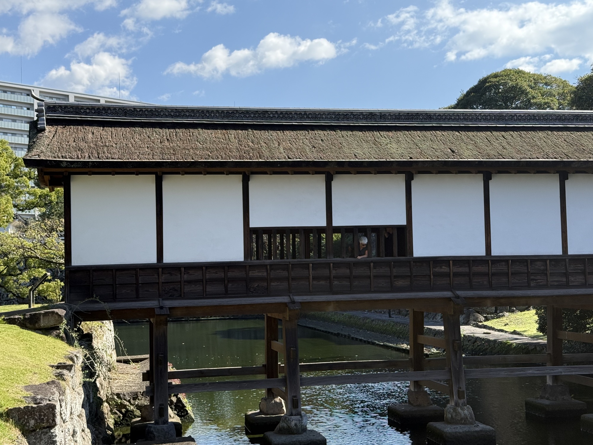 The footbridges at the castle are sadly not original. Like much of the castle, air raids and fires have destroyed much of the original structures like the tenshu, 23 watchtowers, 5 gates and 3 of the rokabashi (roofed bridges with walls)
