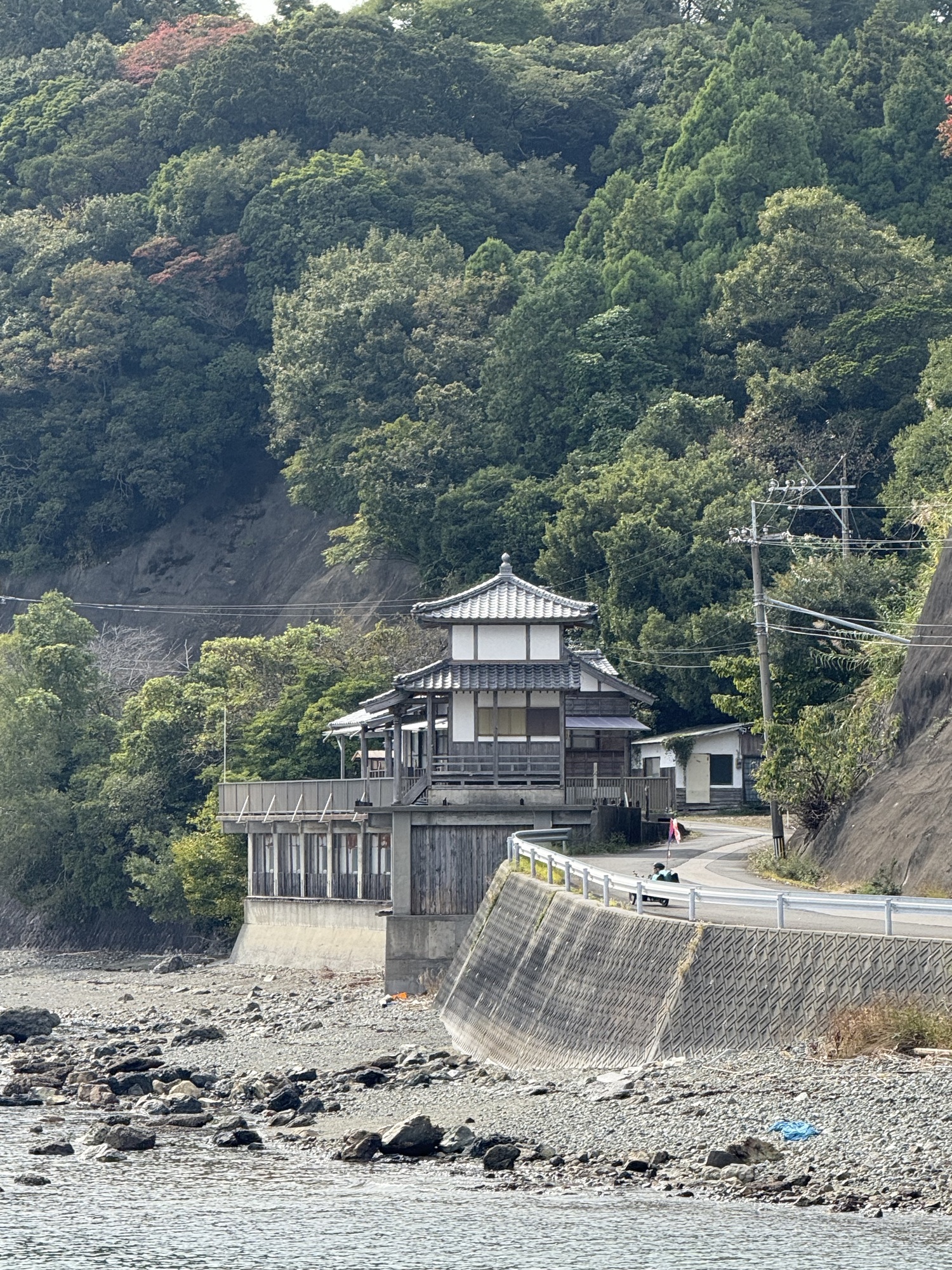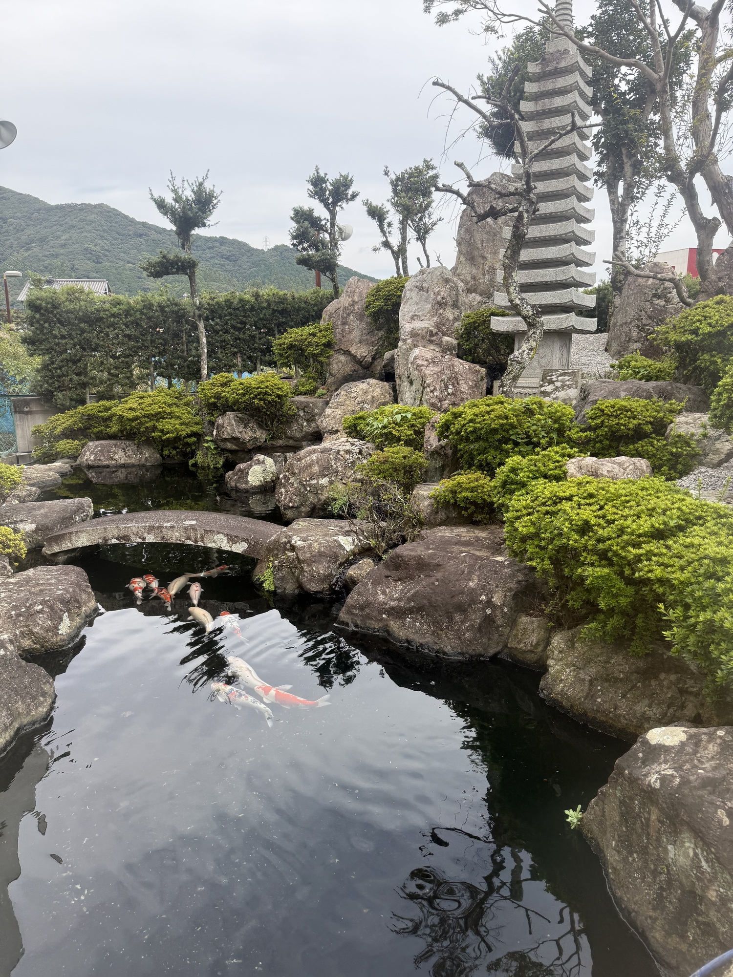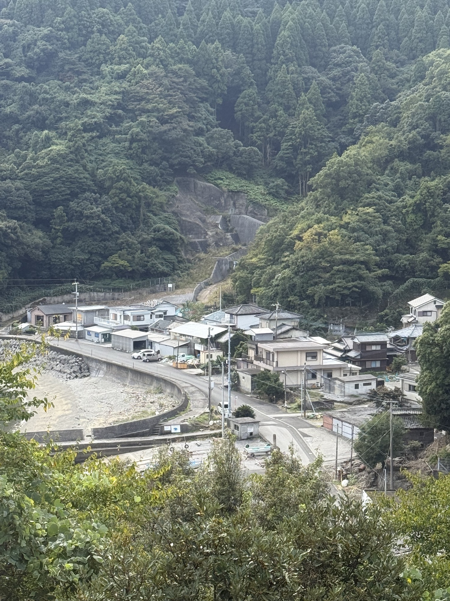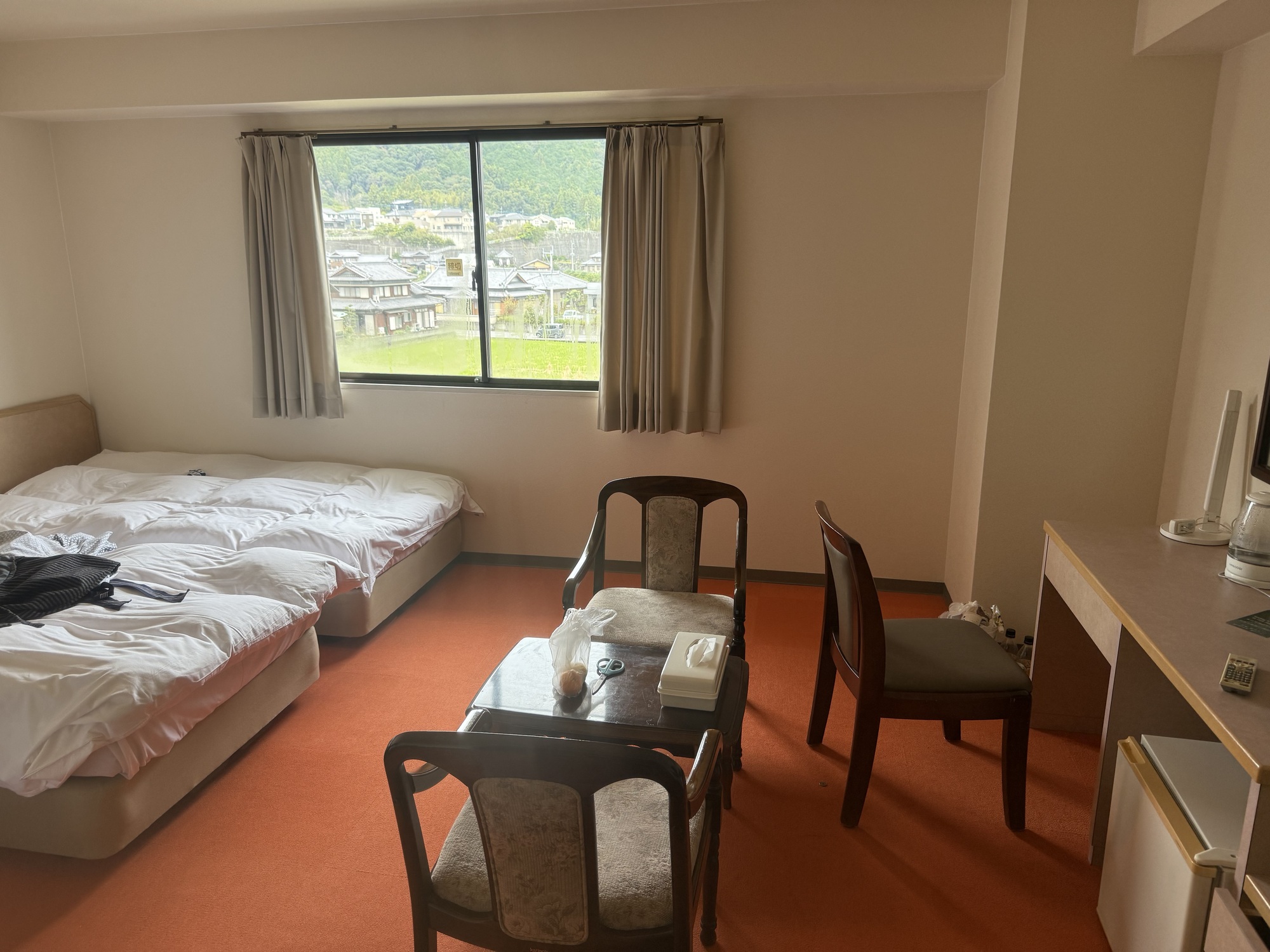 Our room was spacious and comfortable despite showing its age. Note the home in the property behind. We could see their Onsen in the back room of their home.