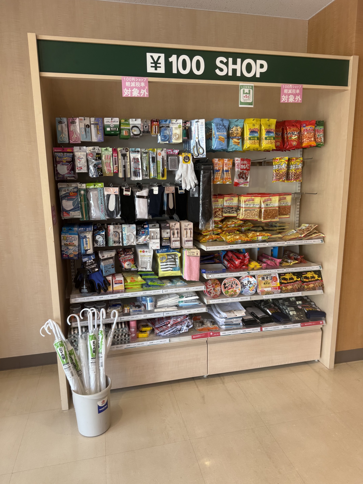This is refreshing to see a shop in a hotel with really low prices. 100¥ is about $1 Cdn. Added to that, Hotel AZ has inexpensive rooms and breakfast is included.