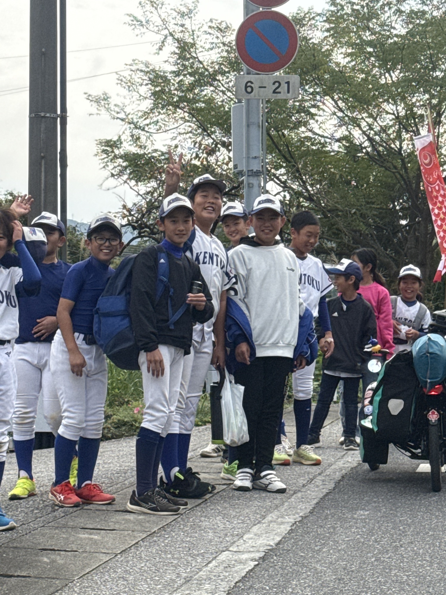 These fellows who are on their community baseball team were practicing at their school when they saw us riding. As a group they ran to chat with us. Lots of fun.
