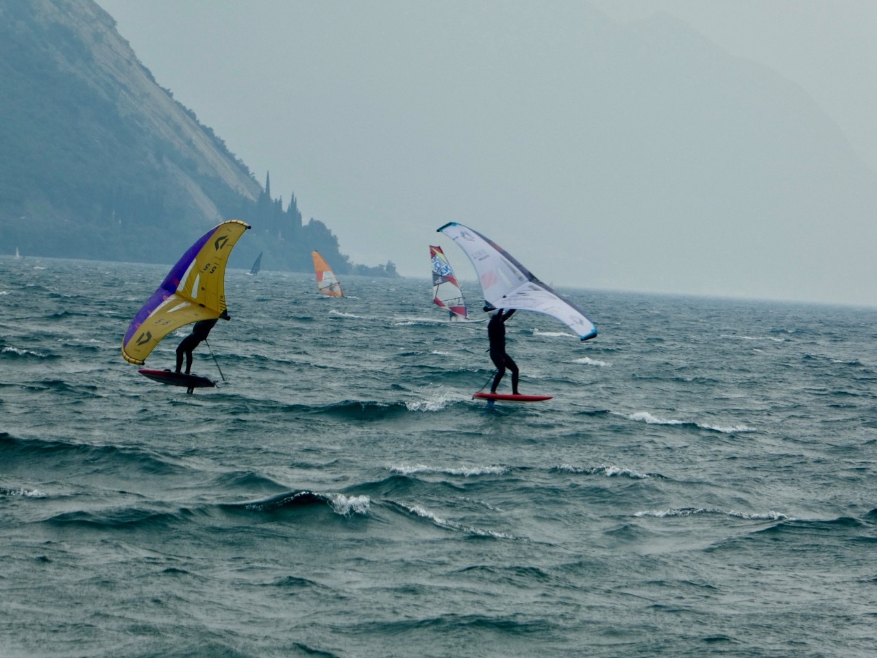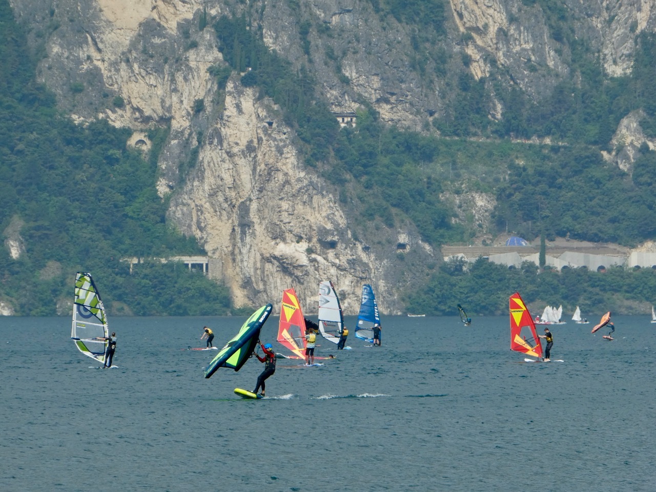 The wind had picked up on the trip back to Arco, where I elected to continue along the Sarca River rather than retrace my morning route from Riva del Garda. It was a much more enjoyable route, taking me directly into Linfano where I again made a slight deviation from my morning route and followed the coastal route to Torbole. I was soon in the heart of wind-surfing mecca. The wind and choppy waters delighted those skilled in the sport who raced back and forth the across the lake at amazing speeds. But conditions were a challenge for the less competent whose sail dipped and then bobbled on the water. I empathized those poor souls –I tried wind-surfing once and had to be rescued by boat when I couldn’t figure out how to get back to my starting point.