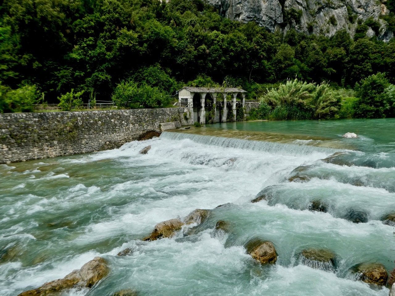 The ride to up the river to Dro was wonderful, the best part of the day. I stopped on occasion but mainly just enjoyed the cycling and my surroundings. Bliss. The cycle path itself ended in Cienga but clearly marked signs directed me into Dro, a small village on the banks of the river. The bike-friendly Centrale Café looked like a great place for lunch, but I was still full from my strudel and so settled for a cold-bottle of water. The waitress addressed in German, a clear indication that I was nearing South Tyrol.