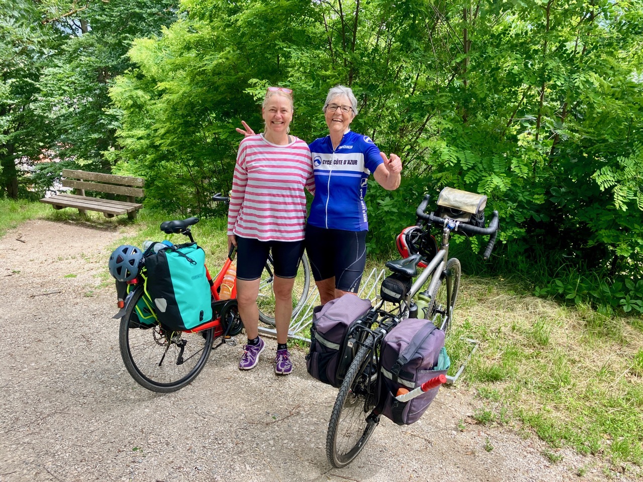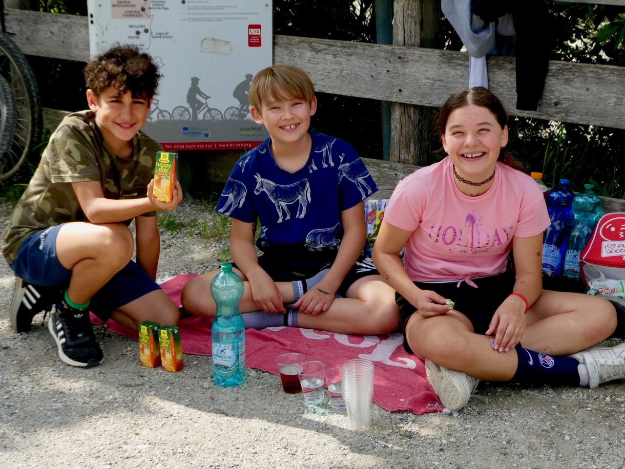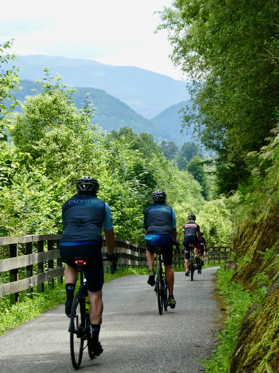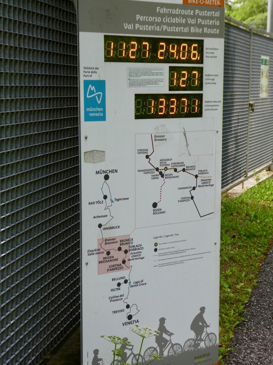 The climb up from Bressanone continued through Sciaves/Schabs and then wound along high farm lanes before dropping steeply to the Rienz River in Mühlbach, a lively bike-friendly town. I stopped at a bakery for coffee and a pastry and then picked up the Pusteral Cycle Path that follows the Reinz River through the Puster Valley. It was a fantastic route – rising and falling as it wound through forests and crop land on dedicated paths and small lanes devoid of traffic. The varied landscape and sometimes challenging terrain were a delight, even when a particularly steep incline forced me off the bike. There were a fair number of other cyclists on the route, which is part of the popular long distance Munich to Venice cycle route. Most memorable were a group of four women sporting "Cycle Now Wine Later" jerseys – they had a few days off and were going as far as time and their legs would take them.