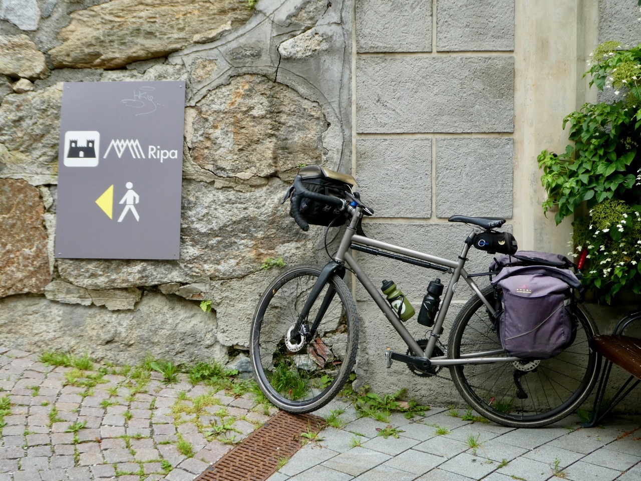 Due to their various opening times, the plan was to visit the museum today and take an early lunch at AlpINN tomorrow, when I had scheduled a short mileage day. Today, I had hoped to drop off my bike and panniers before hiking up to the museum; however, the guest house was shut tight so I donned my sneakers and pushed the loaded Vivien George up the steep incline to Bruneck Castle, where the museum is housed. A couple of other bikes were parked outside the castle, one of which belonged to Tina, a solo woman cyclist from Germany who was making her way from Munich to Venice. We had a long and wonderful conversation, instantly bonding over shared experiences and challenges of touring solo. She had just finished her museum visit and although lukewarm about the displays she remarked that there were good views from the castle tower.