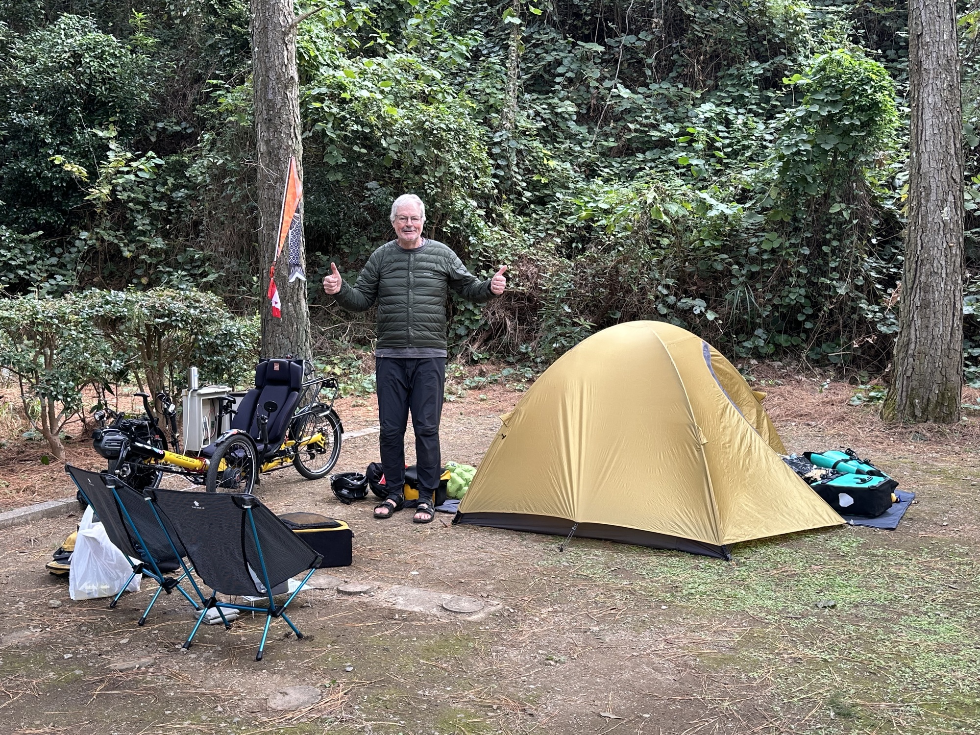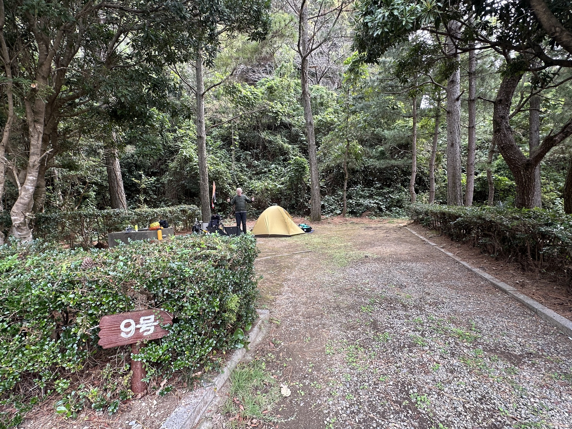 We really enjoy camping and this campground is superb. Each site is massive with a hedge providing privacy. The bonus is that the beach is beautiful. Our tent is Japanese…an Arai made by Ripen. It is so lightweight and is fast to set up.