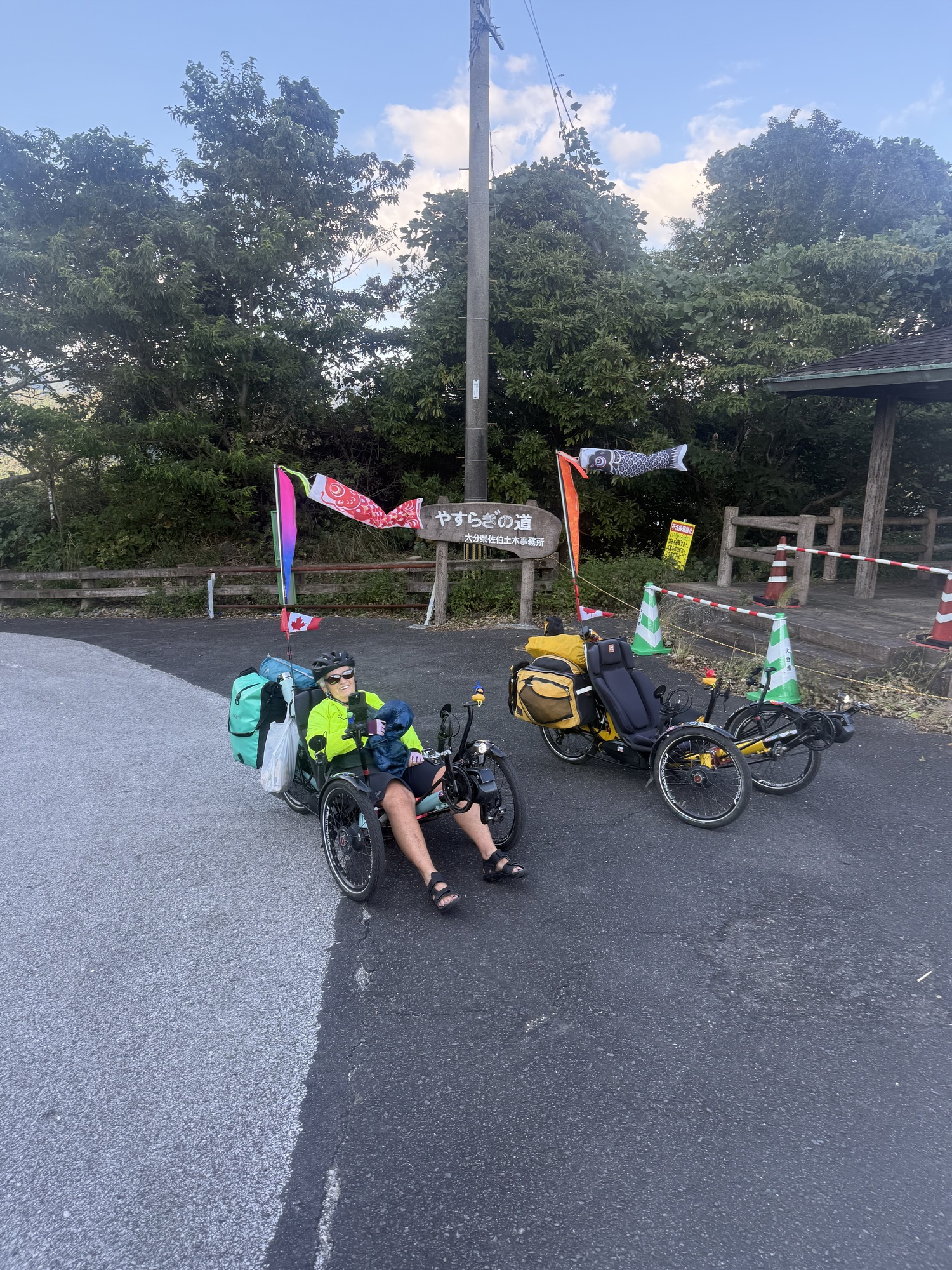 We had a bit of a panic as we need to check in for the campground at the Michi-no-Eki before they close at 5 pm. We have pushed ourselves to keep going through the difficult 10 km. Anyway, we arrived at the Michi at two minutes to 5. Within. 2 min we checked in and bought groceries for dinner and breakfast.