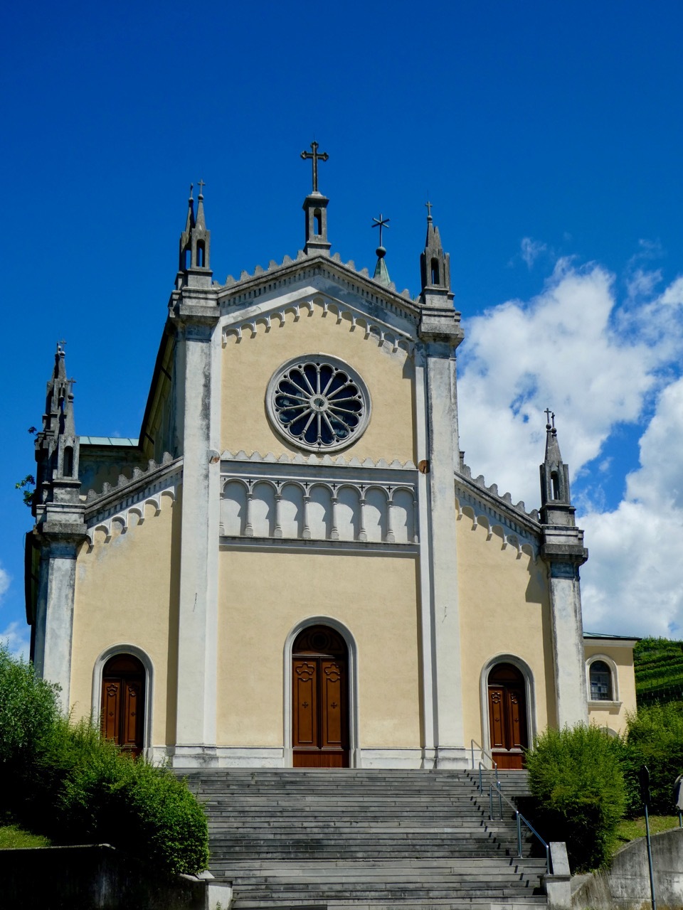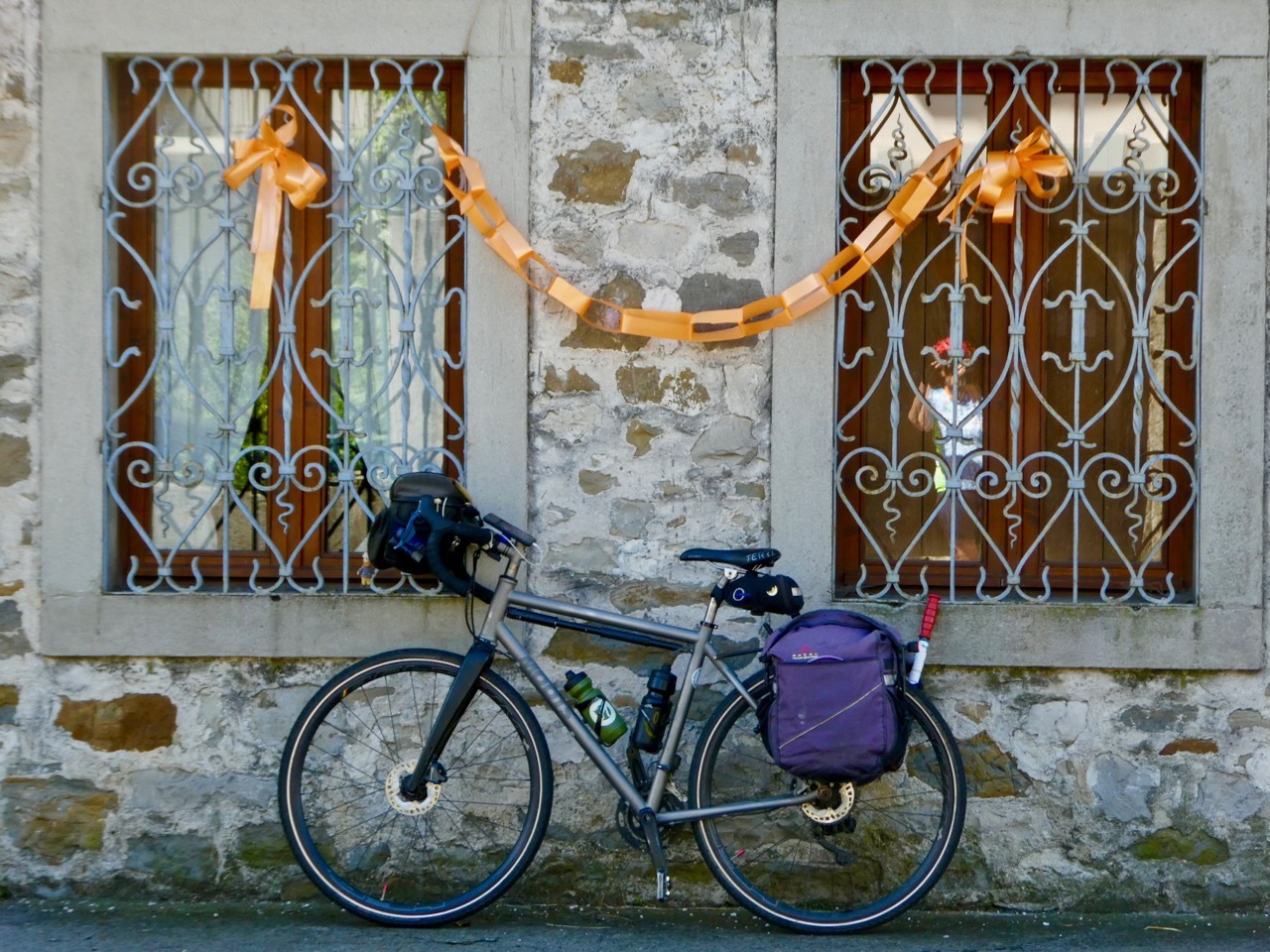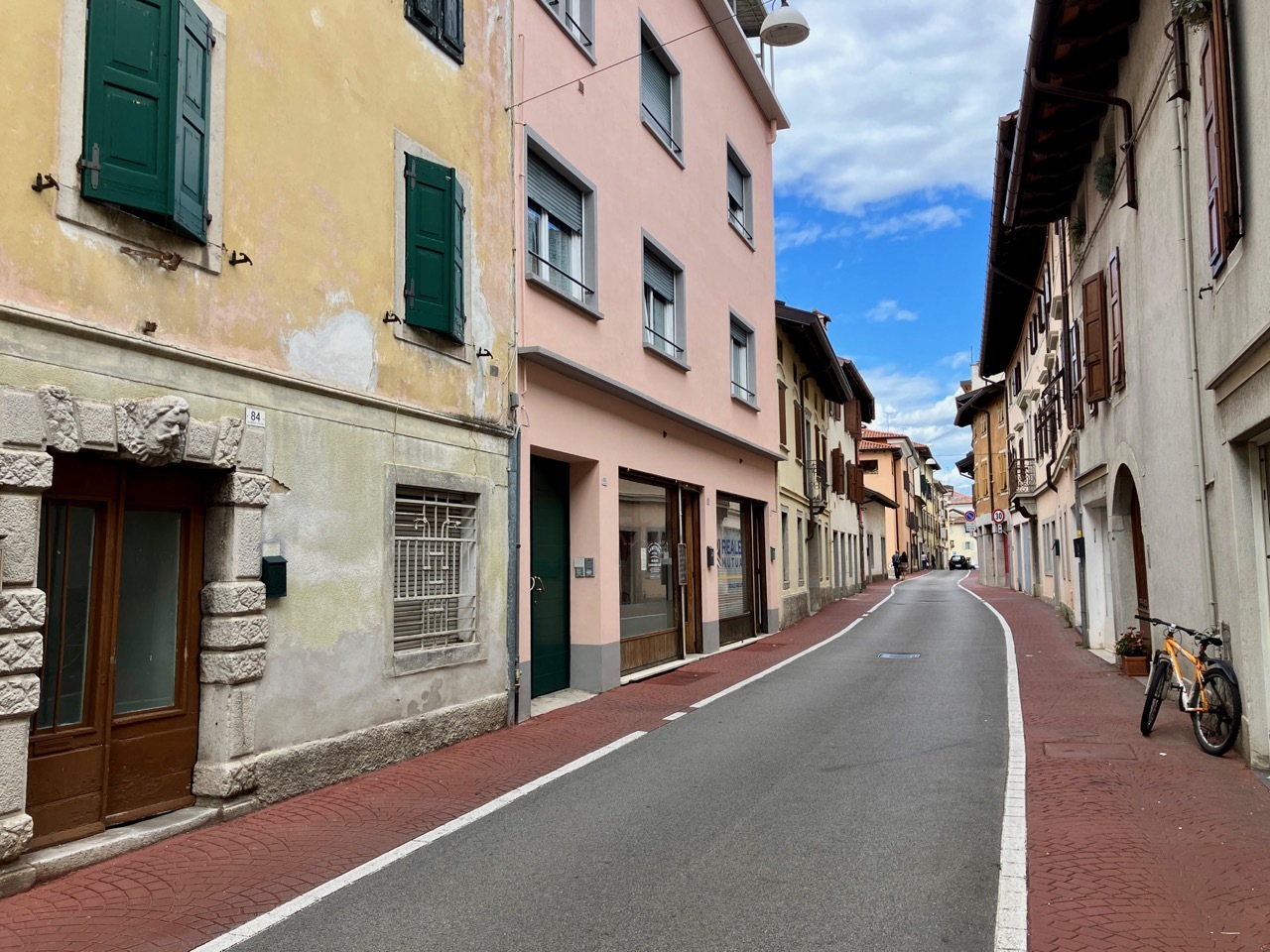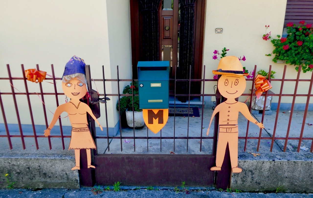 The first miles were on provincial roads, designated SP, that took me through a string of small town that lay along the western foothills of the Julian Alps. After a brief stop for coffee and a pastry in Tarcento I arrived in Nimis, thinking I’d entered a time warp - it looked like Halloween in July. The whole town was festooned in orange – flags, flowers, banners, and costumed figures. I never did figure out what it was all about, but I certainly enjoyed the spectacle.