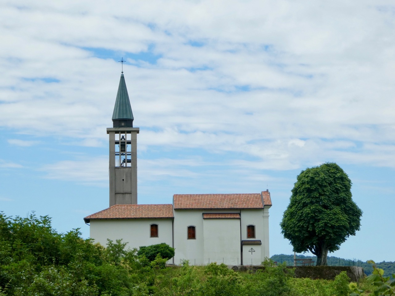 I continued to gradually climb past Raune, then crossed to another ridge, which was more like a small knob. I soon reached the town of Oblizza and the Santa Maria Maddalena church. I'd spotted the church and it's distinctive steeple at several points on my way to Oblizza, and once in town I climbed up to the small promontory it occupied. The reward was magnificent views down the valley to Cividale and across to the towns of Lesizza and Raune, both of which looked much more populous than my pass-through had suggested.