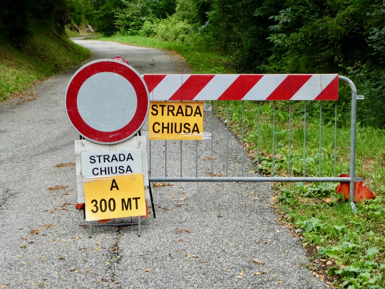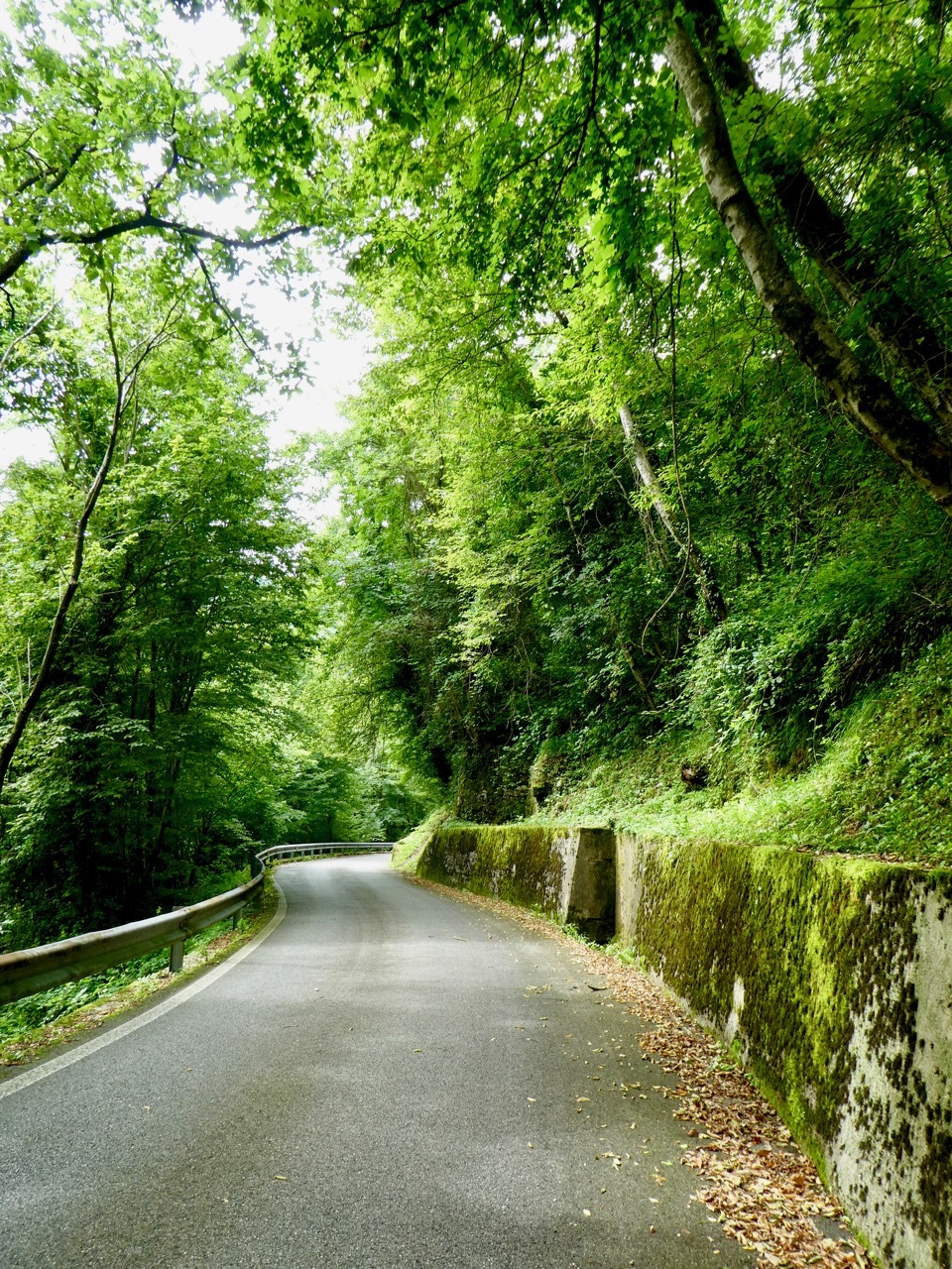 The climbing began shortly after Picig, a series of sharp switchbacks that took me up almost 1000 feet into thick woodlands. The small road was bordered by a mossy stone wall punctuated with remnants of old homesteads – it was a bit like being in a Grimm’s fairy tale though I was nowhere near the Black Forest. I passed through the village of Lesizza and continued on a more gradual climb along the ridge, a magical stretch through the forest that was suddenly interrupted by a Strada Chiusa sign, aka Route Barrée or Road Closed. I naturally ignored it and continued on toward Raune.
