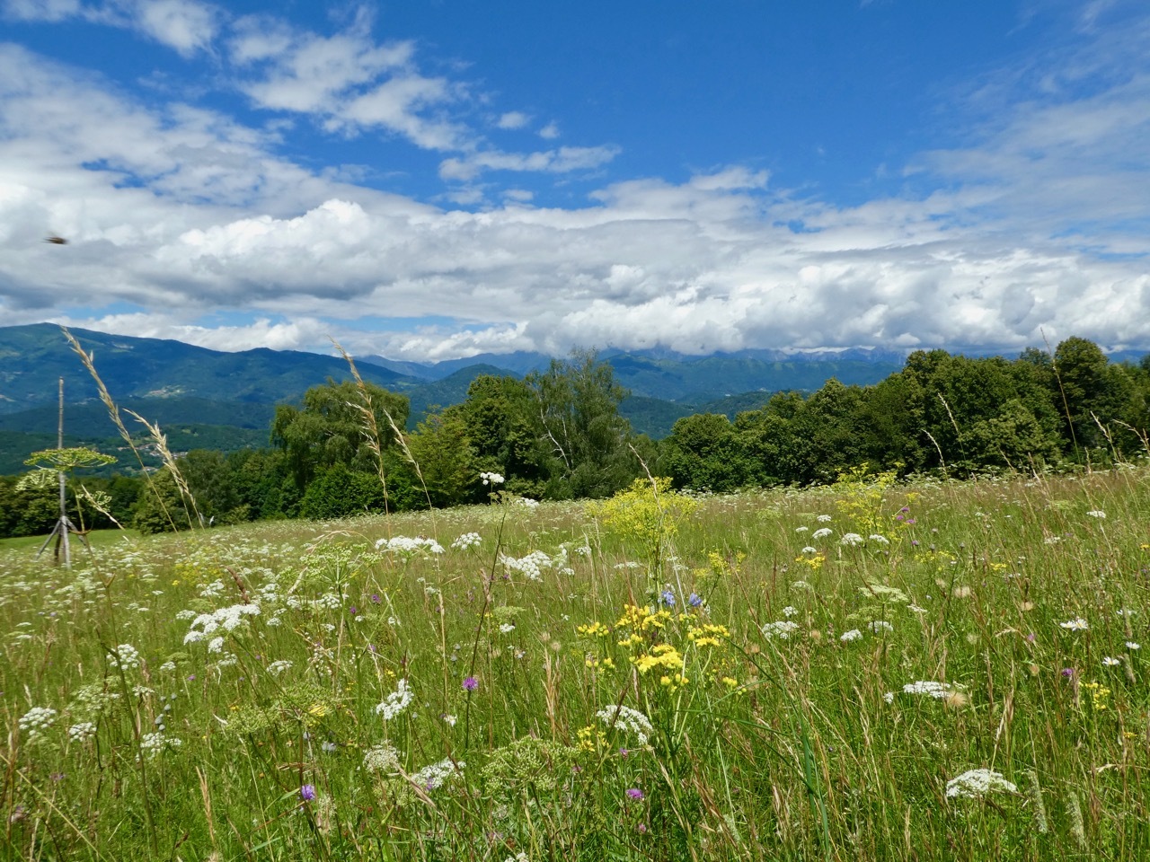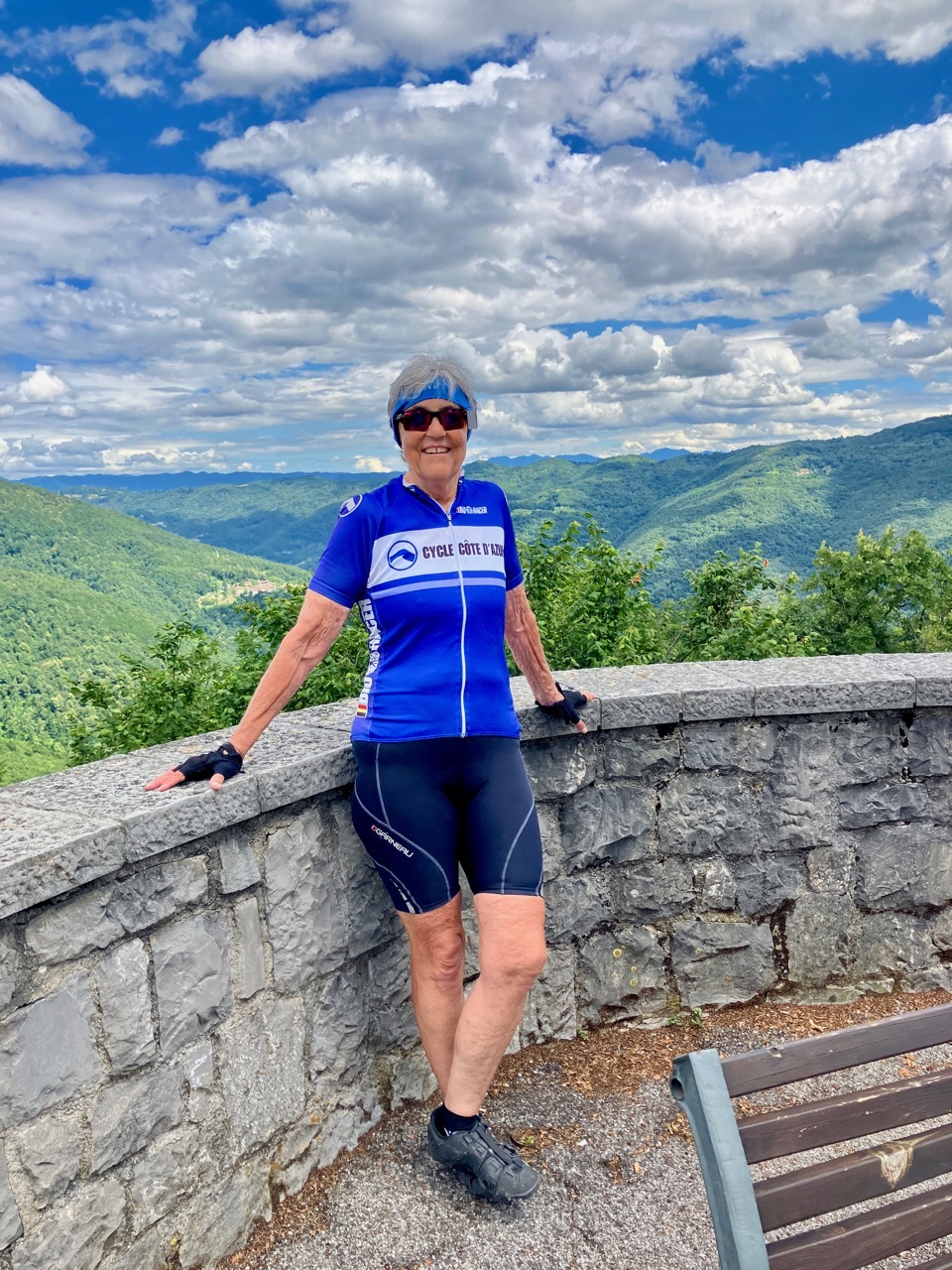 There were fewer towns along the eastern ridge but there were occasional high meadows that offered excellent views across the valley to the small towns that marked my morning route. The ride itself was splendid, undulating across the ridge with nothing too steep in either direction. There was no traffic of any kind, and no signs indicating the distance to Castelmonte, where I planned to stop for my picnic lunch. However, I was growing hungry and instead pulled up to a small chapel a short distance off road. The Church of St. Nicholas commemorates the German attack on Mount Saint Nicolo on October 27, 1917, one of many battles that took place in the Natisone valleys during WWI.