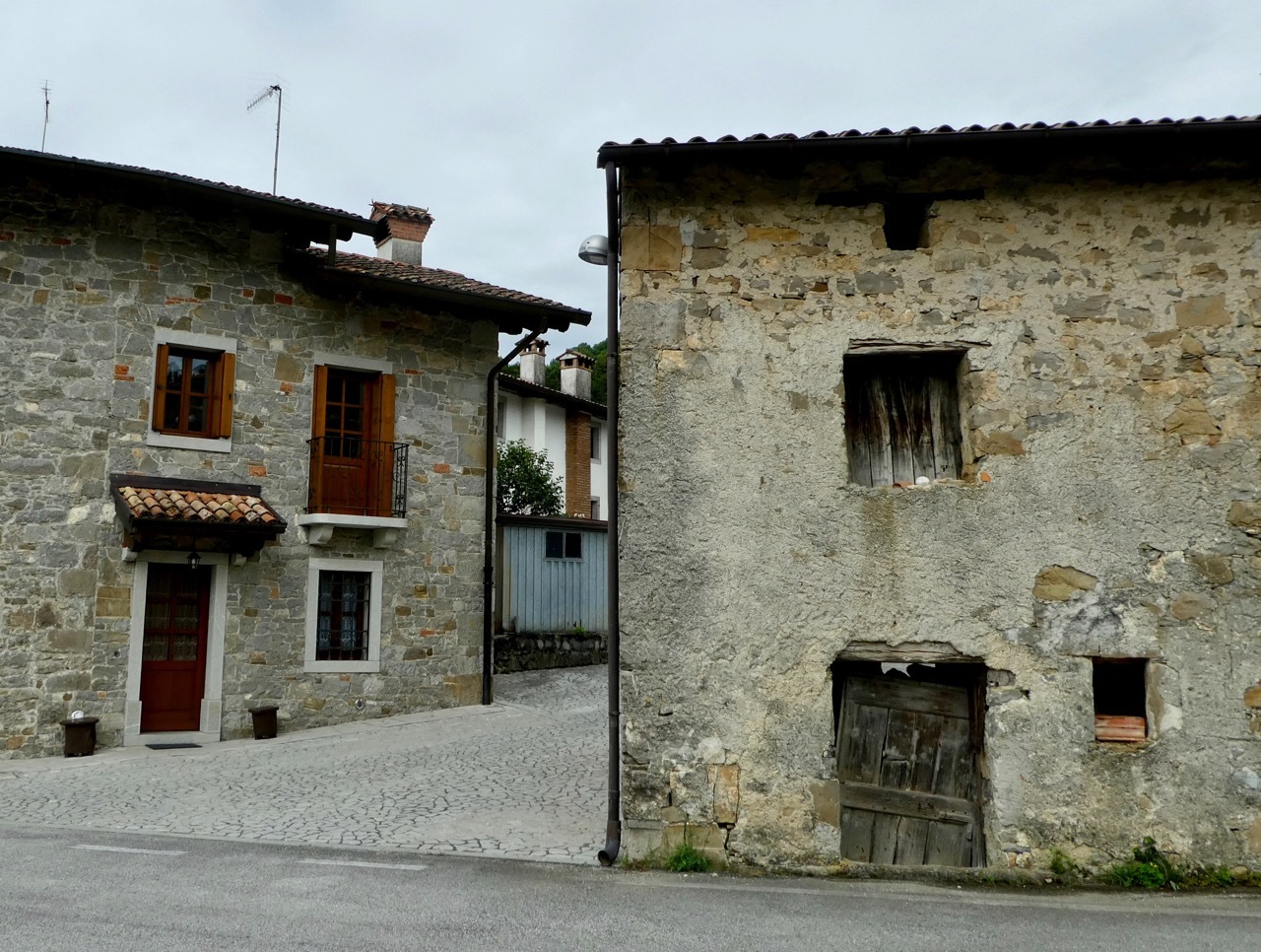 It was overcast when I set out, initially retracing the walking route I took yesterday. I quickly realized that the cobbled streets of the Gastaldaga were a poor cycling surface and was happy when I reached the pavement. The route passed through Sanguarzo and Ponte San Quirino on SS54 and crossed the Natisone River in Ponte San Quirino. For the next several miles I continued through a string of Friuli towns on progressively smaller provincial roads. The terrain was flat as i rolled along, gazing up at clusters of villages visible in sea of green and wondering which, if any, I might pass through.