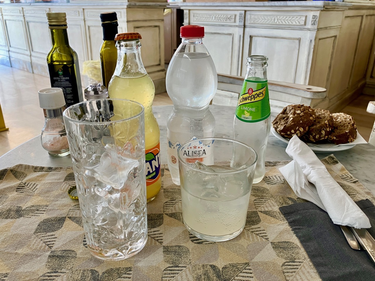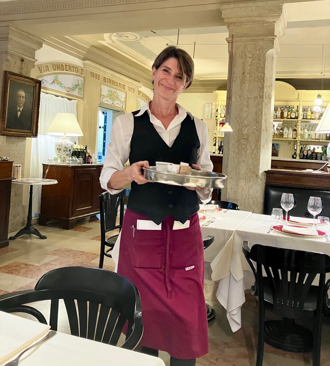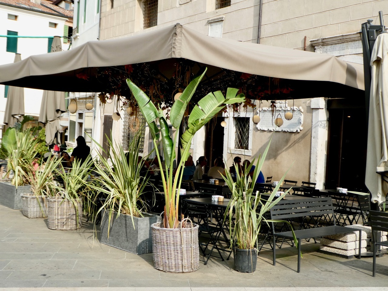 Most of final ten miles were on smaller roads through farm fields or vineyards. I arrived in Bassano del Grappa as market day was winding down and walked through the a maze of trucks loading up unsold product and small tents, looking for my street that was located just off Piazza Libertà. Once found, I easily checked-in with the keys codes provided, stashed Vivien George in the hallway, and after a quick shower went looking for food. Once again my timing was not ideal as restaurants were closing up and most open cafés had stopped serving meals. But as in Montebelluna, I had the good fortune to find a place that agreed to make me a salad to go along with my three drink order. Hydrated and fed, I retreated to my air conditioned room for the rest of the afternoon, only emerging for dinner at Ristorante Birraria Ottone – a restaurant I’d visited during my 2021 tour through the Alps. Tomorrow was a rest day, one I was definitely looking forward to.