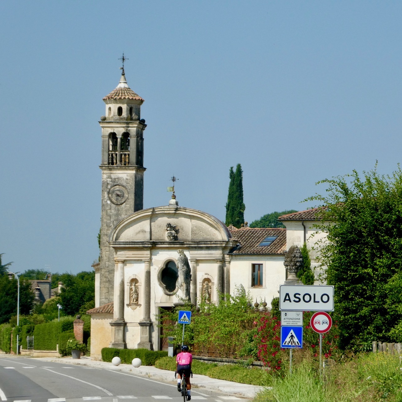 I’d not gone more than 200 yards up the hill toward Asolo before my resolve was lost and I dismounted. As sweat poured off my face, I realized it was a bit foolish to push a loaded bike almost a mile up an 8% average grade in 95° heat just to visit a pass-through town. I found an alternate route that by-passed Asolo and got back on Vivien George, knowing that Asolo would have to wait for another, cooler day.