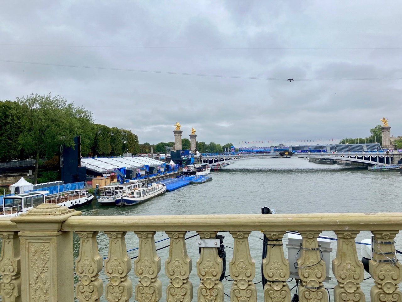 As you might know, Paris has for the most part chosen not to construct a grand arena or new venues for the games and instead is making use of outdoor spaces that feature some of the city’s most iconic sites, an actualization of the motto “Games wide open”. Since my arrival March, I have watched as temporary grandstands rose in the shadow of the Eiffel Tower, at Place de la Concorde and along the Esplanade des Invalides, venues for beach volleyball, skateboarding, and archery, to name a few. Perhaps the most ambitious plan was to hold the opening ceremonies on a 6 km stretch of the Seine, ending at the Eiffel Tower/Trocadero. These concepts struck me as very French – romantic and a bit impractical, the bold act of a nation proud of its history and traditions. The challenges and logistics were enormous, none more so than maintaining a high level of security along the route of the opening ceremony.