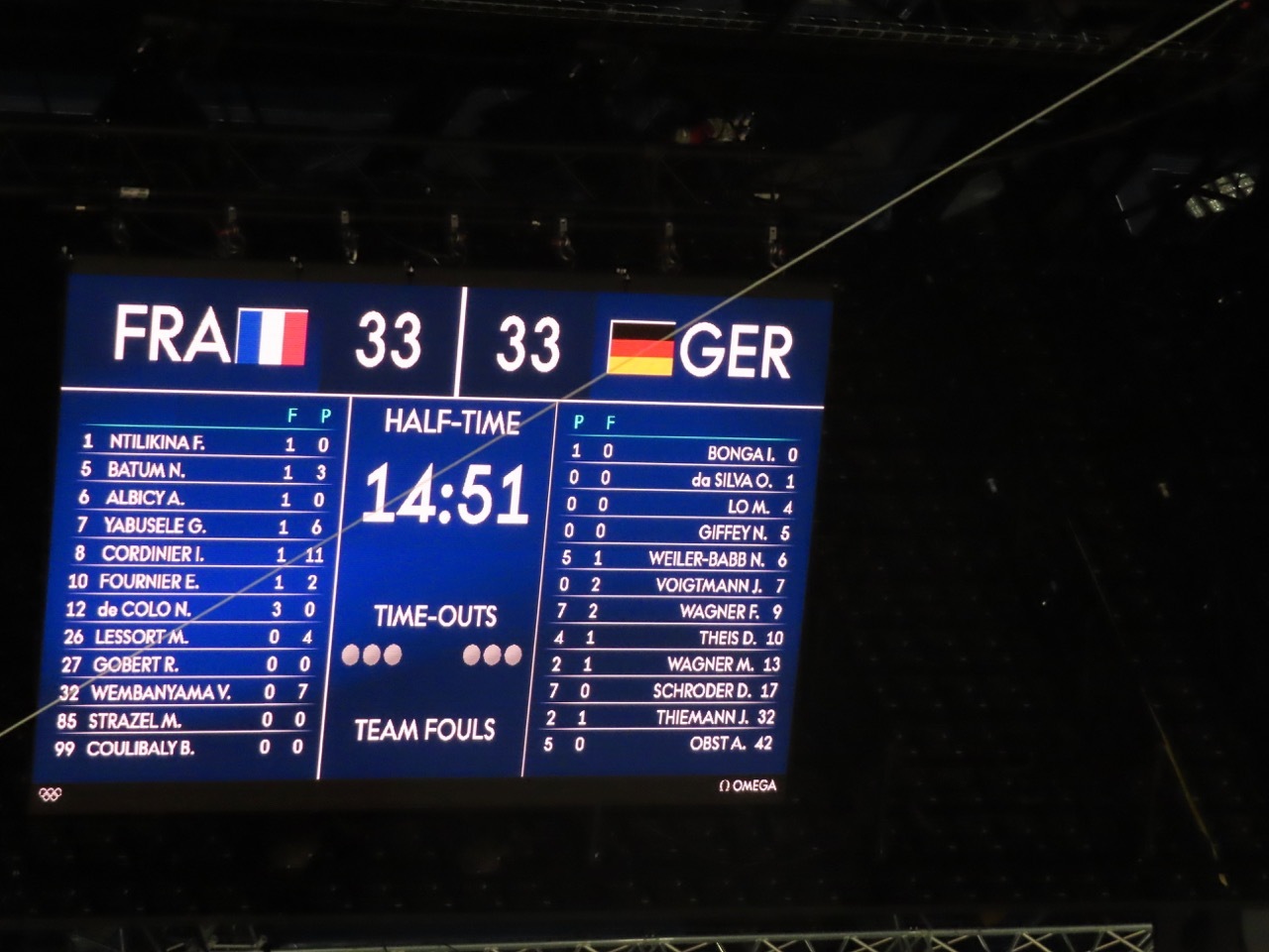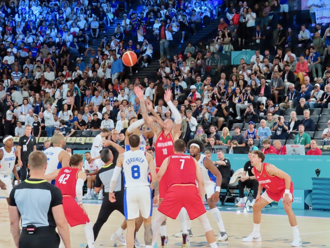 When a ticket to one of the two men’s semi-final games became available, I hesitated. The ticket was pricey, and unlike the two previous games I did not know who would be playing. According to prognosticators, the most likely teams to reach the semi-finals would be the USA, Canada, Germany, and Serbia - France had dropped out of the top four as a result of their inconsistent play during the preliminary round games. Thus, there was a 50:50 chance I could see the USA game, and in any case I would be able to watch some high-caliber basketball. So I pulled the trigger, and good fortune came my way.