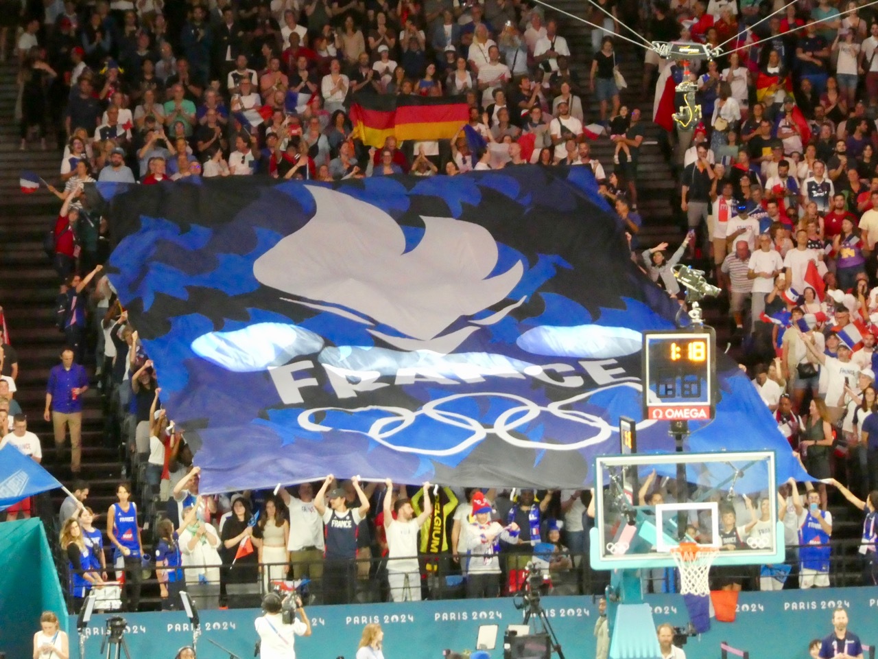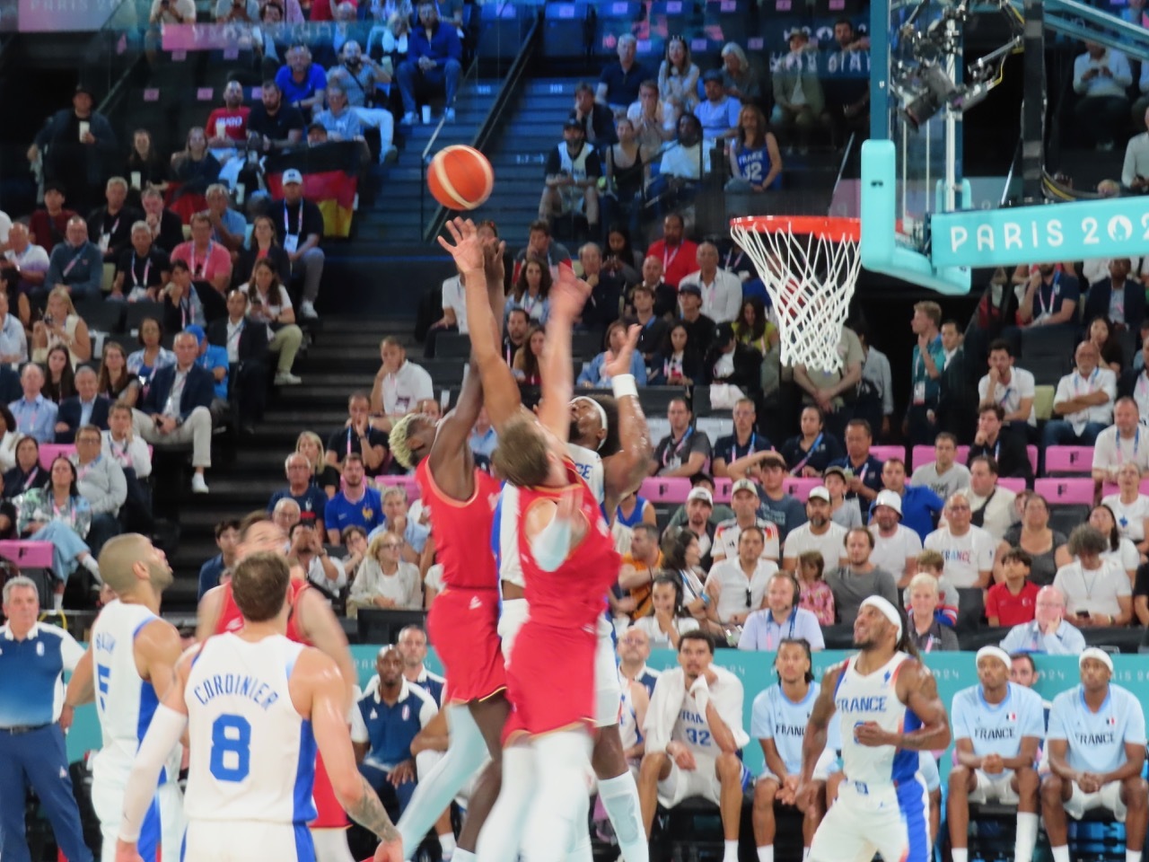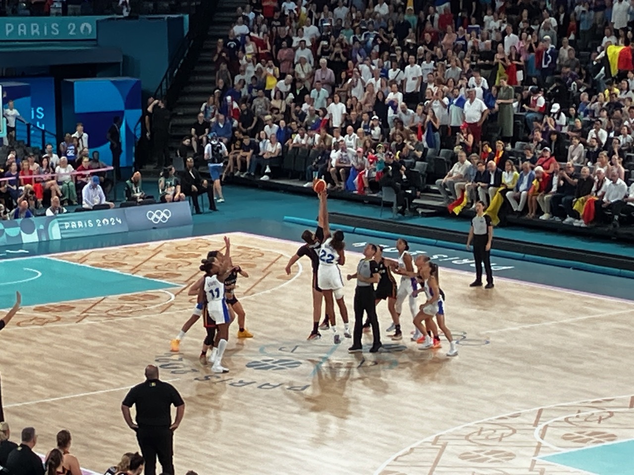 Back in May, the first tickets I purchased after deciding to stay in Paris for the Olympics were for the two women's semi-final basketball games. I really wanted to see the USA Women play and, though it was a near certainty they would make it to the finals, I hedged my bets and bought tickets to both semi-final games. The first game was USA vs Australia, handily won by USA. The play of the Americans was stellar, but the game lacked excitement. The USA dominated from the start and the crowd was subdued, with little flag waving and few chants of “Aussie Aussie Aussie, Oi Oi Oi” or even "USA, USA". Nonetheless, I really enjoyed seeing the USA players in person – and marveled at how far the game and skill sets had advanced since I played D-3 basketball in college.