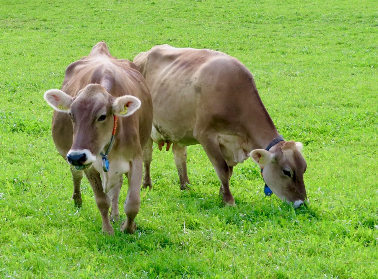 The coat coloring and markings looked familiar and considering our location I thought they might be Brown Swiss. A little more digging led me down a rabbit hole of cattle breeding: the original Brown Cattle breed (Braunvieh), also known Swiss Brown, was started 600 years ago by monks in central Switzerland for the triple purpose of meat, milk, and draught work. Breeding stock from this lineage was sent to American in 1869 and after many generations of selective breeding soley for milk production, this distinct breed became known as American Brown Swiss. There are several breeds of Brown Cattle that exist in Europe today - the Allgäu Brown Cattle is considered a distinct breed and is known for both its milk production and tender juicy meat.