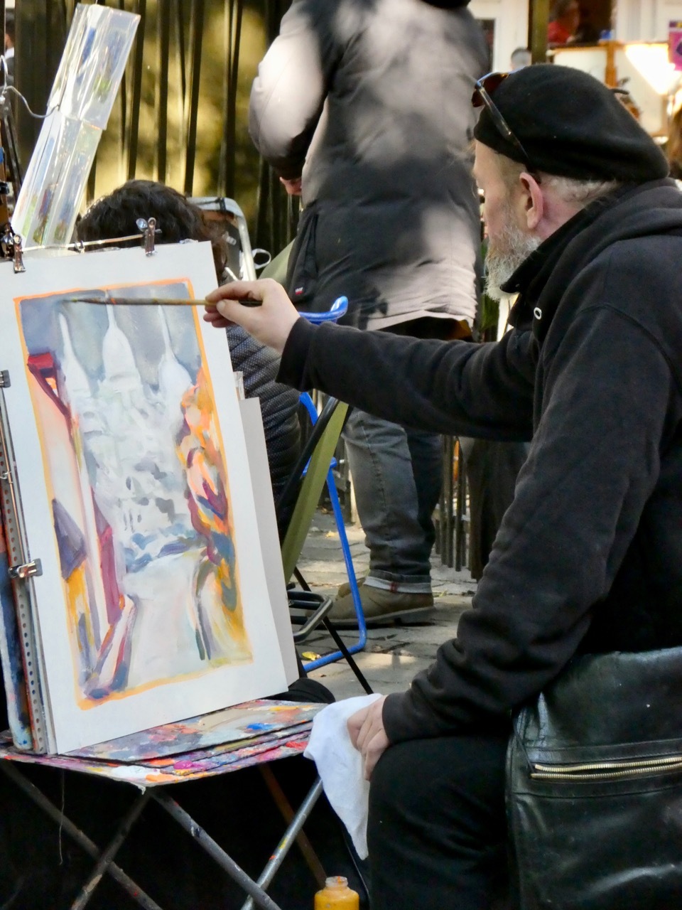 Leaving Sacré-Cœur, I wandered the cobbled and colorful streets of Montmartre, a quartier that has a long and rich history as a haven for artists – including many renowned painters, performers and poets. The artistic tradition continues today, with many galleries and ateliers tucked into the narrow streets of the quarter. Among the most well-known is the Place du Tetre, is a large square where artists set up their easels for the thousands of tourists that pass through each day.