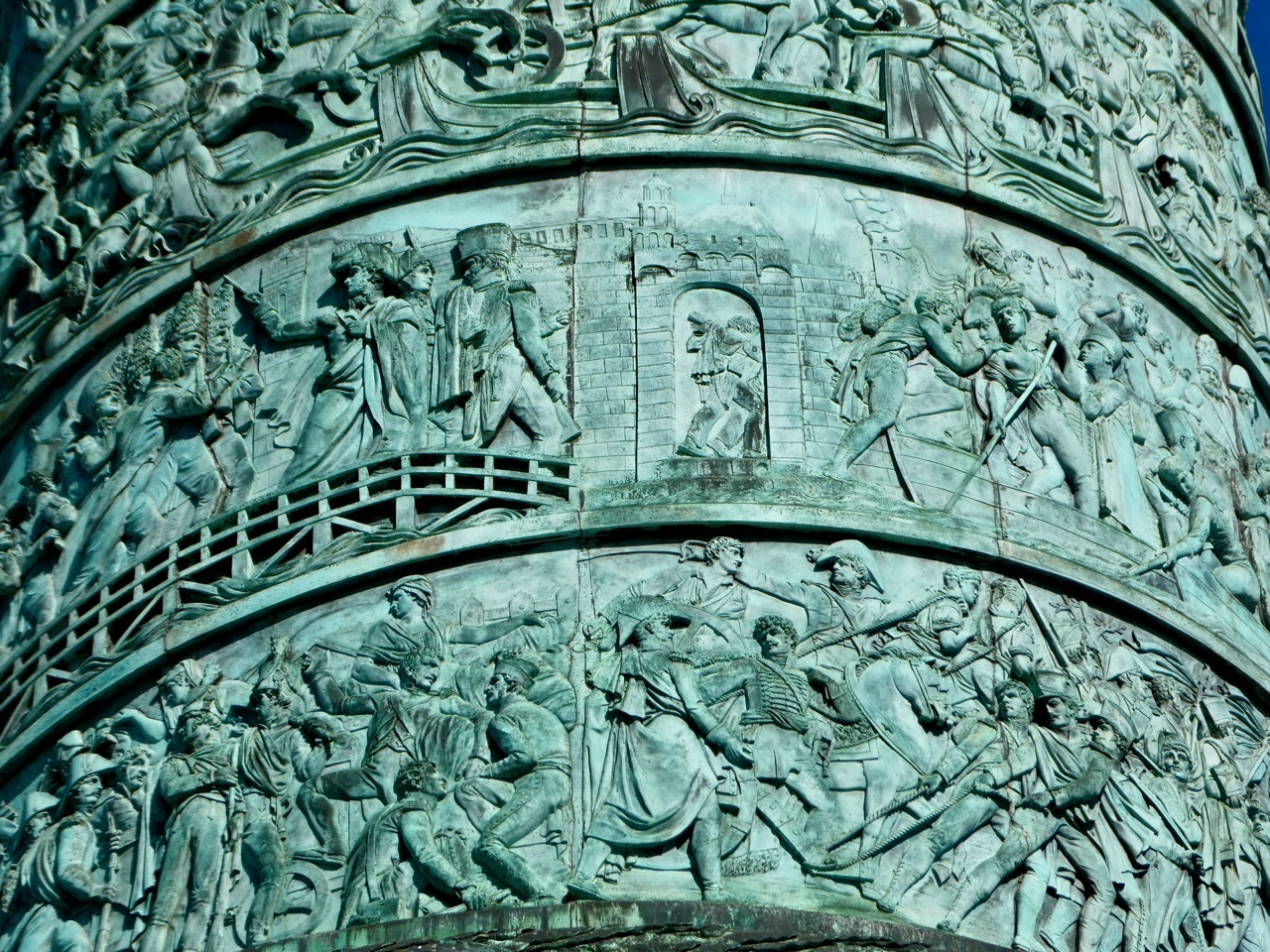After lunch, I made my way toward the Seine, randomly turning onto streets that looked interesting. My wanderings took me to Square d'Estienne d'Orves and the Eglise de la Sainte Trinité as well as past some familiar landmarks - Galleries Lafayette and the Palais Garnier. For the first time, I found myself in Place Vendôme, a grandiose octagonal square lined with neoclassical buildings that now house luxury stores. At the center stands the Vendôme Column, which was originally built to honor Napoleon’s wartime victories and modeled after Rome’s Trajan's Column, another war memorial. During their brief rule, the Paris Commune destroyed the original column in 1871 during “in repudiation of its perceived glorification of national chauvinism and bellicosity.” The decision to rebuild the column was reached soon after submission of the Paris Commune, and in 1874 the replica was erected in Place Vendôme.