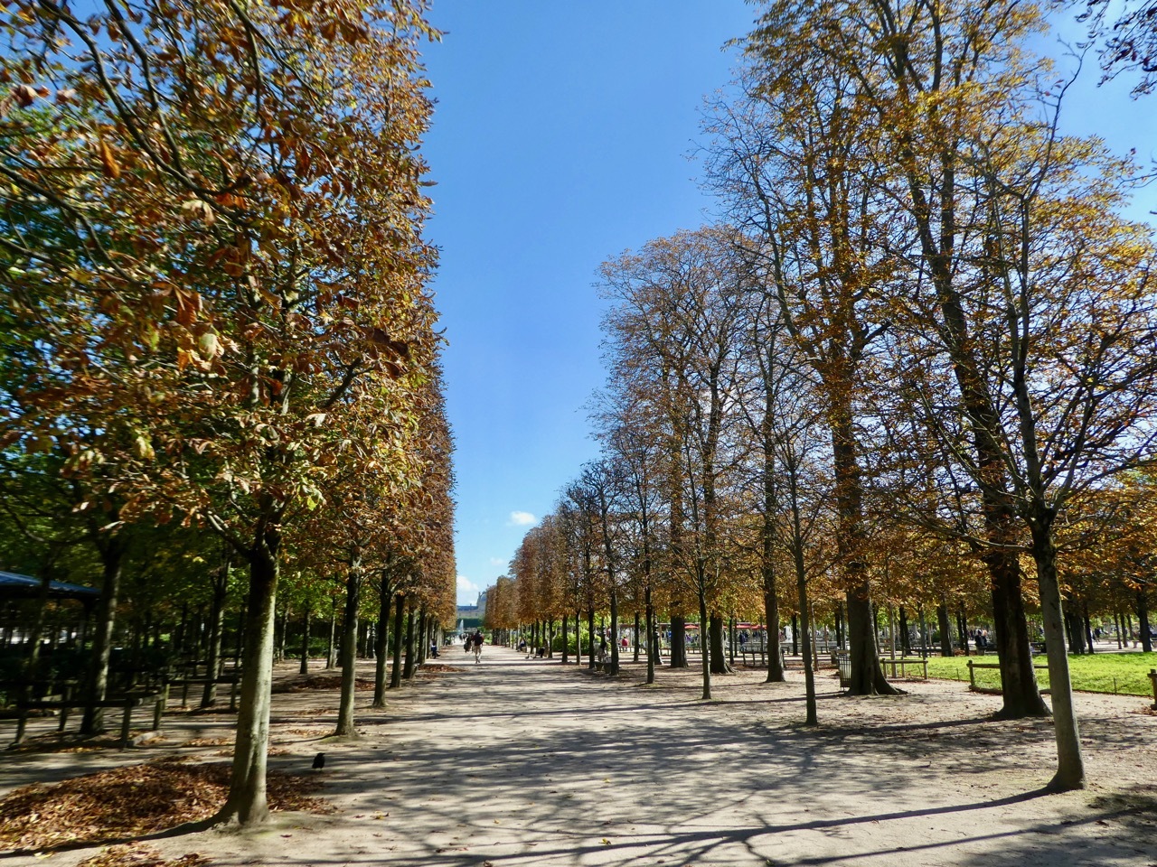Soon I was back in familiar territory, strolling among the fall colors of Tuileries towards the Louvre. I crossed the Seine and with a nod to the Tour Eiffel and Palais Royale continued on to Saint-Germain des Peres. The final stretch was by bike, the last two miles of the tour.