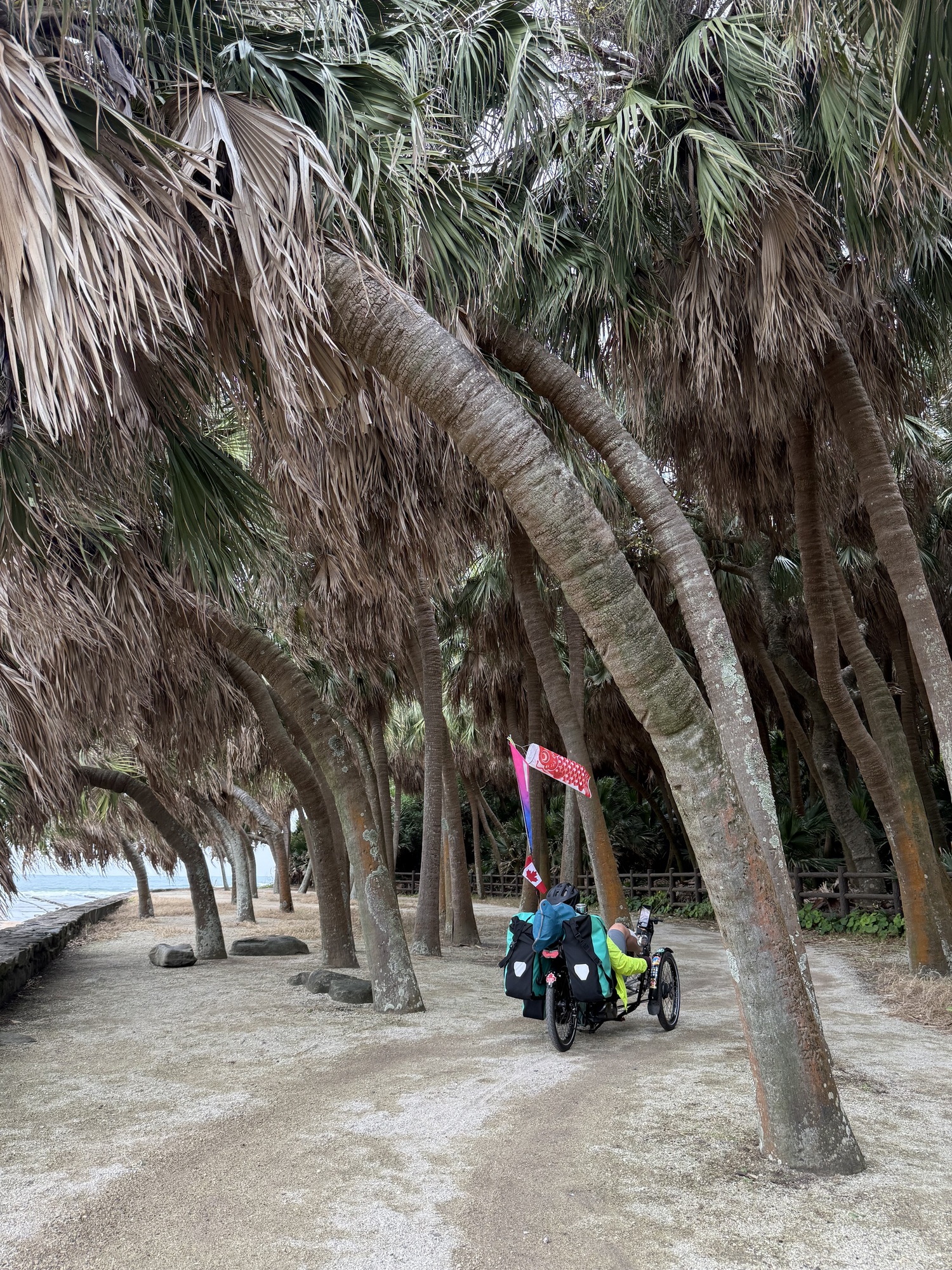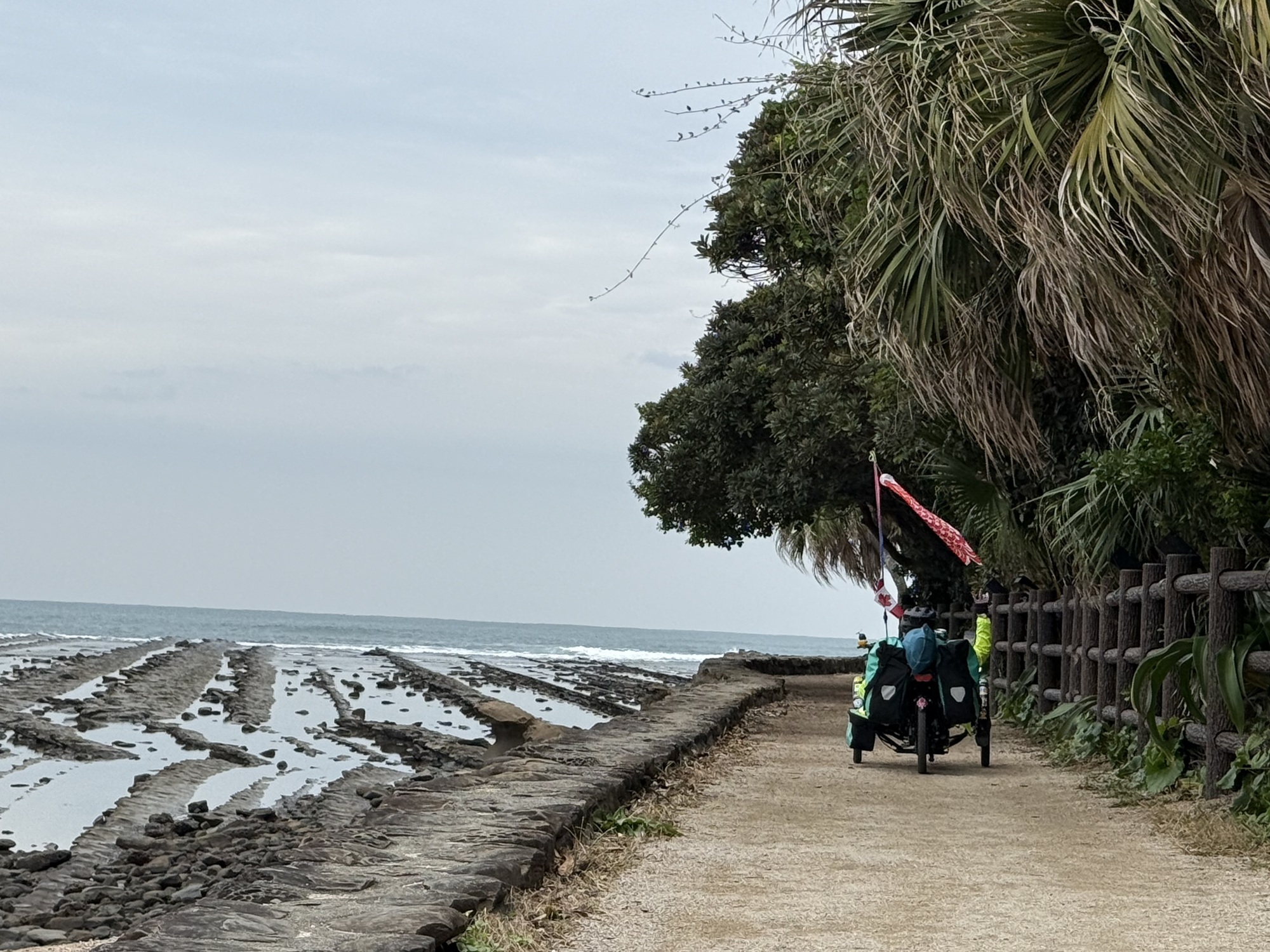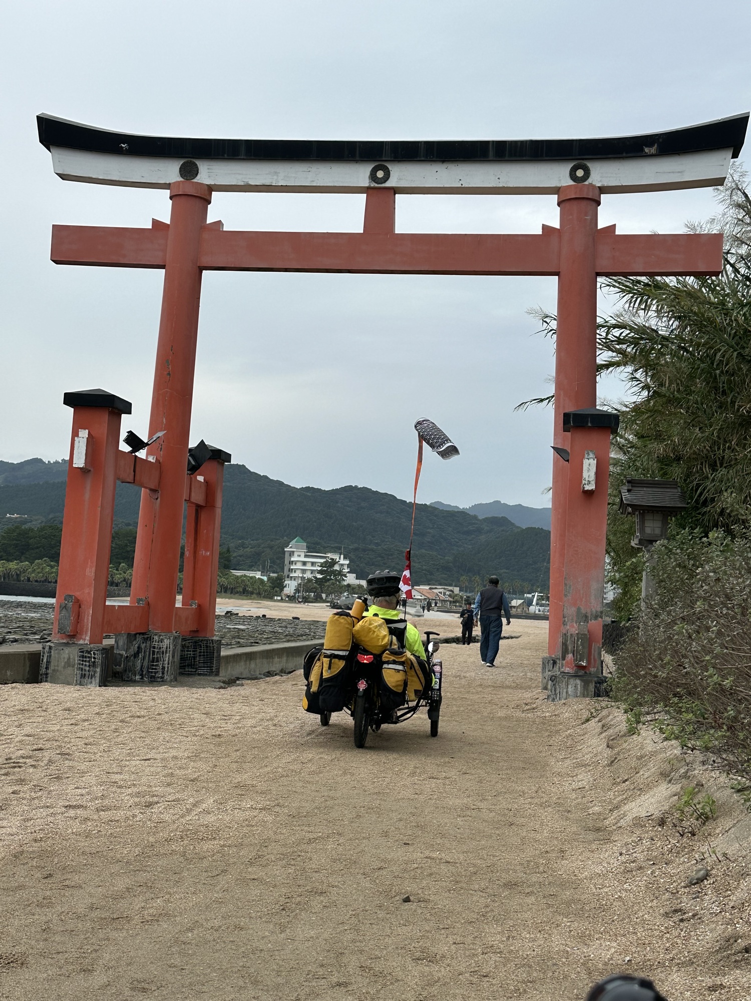 Aoshima Island is a special place. It is home to a special shrine and Japanese people flock to this island in large numbers. They walk the circumference (about 1.5 km), visit the Shrine and enjoy the island’s beauty and its position on the ocean surrounded by surfers and the crashing surf. We will be able to ride our trikes on the island.