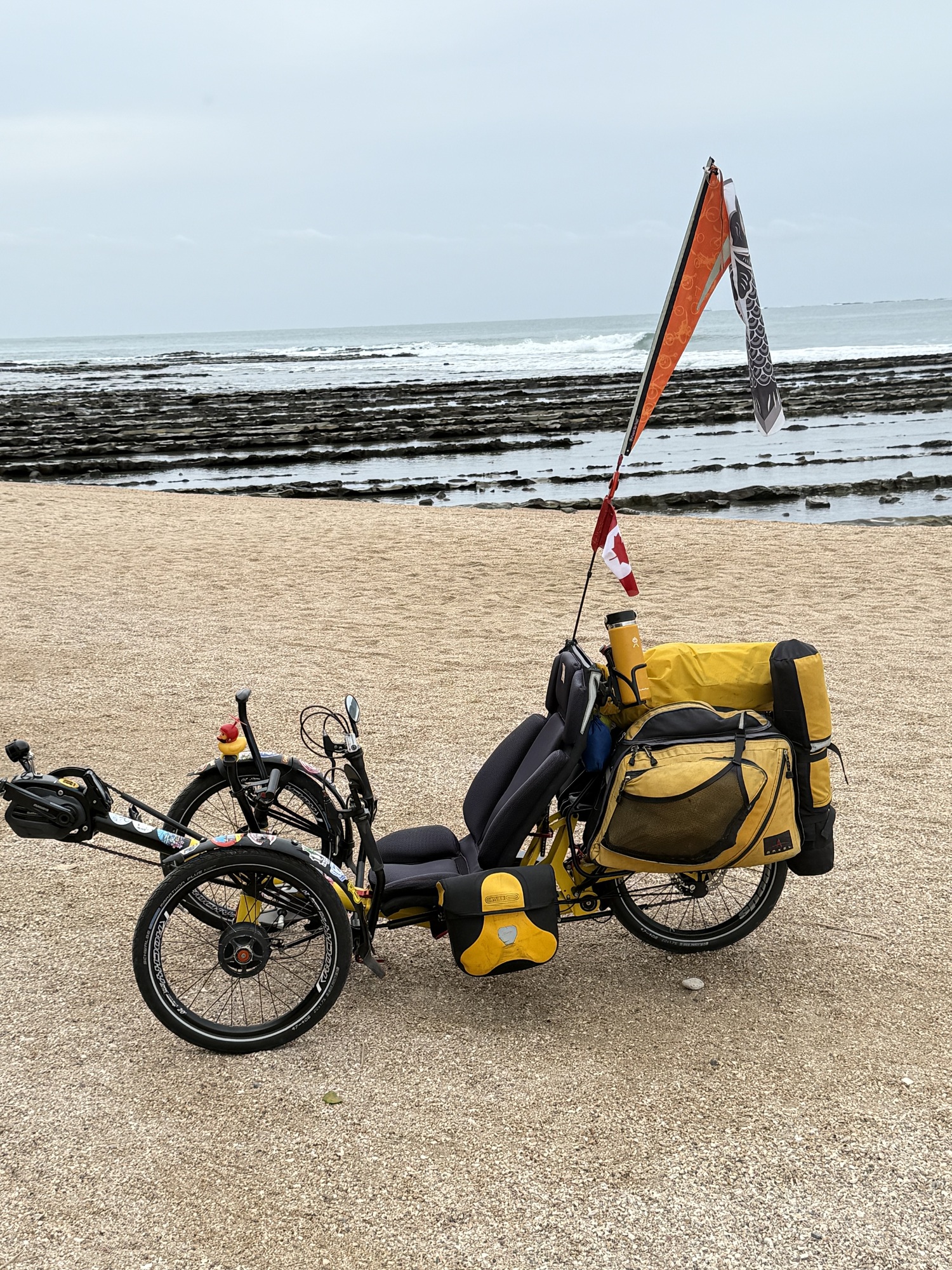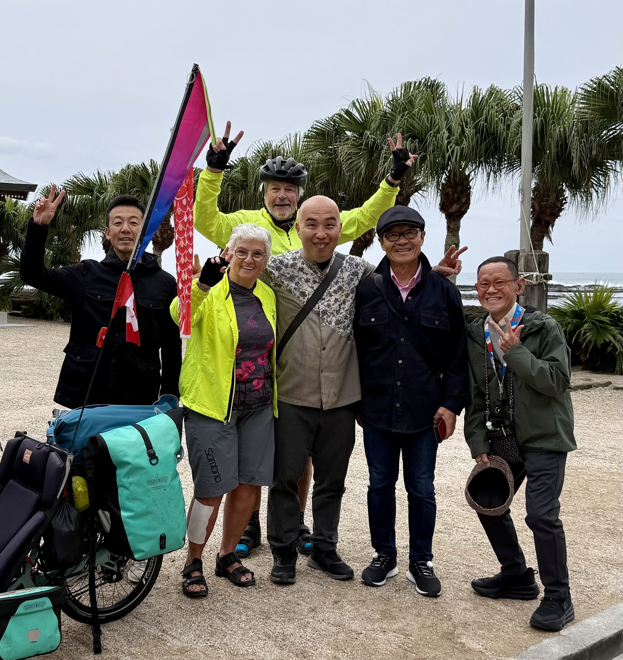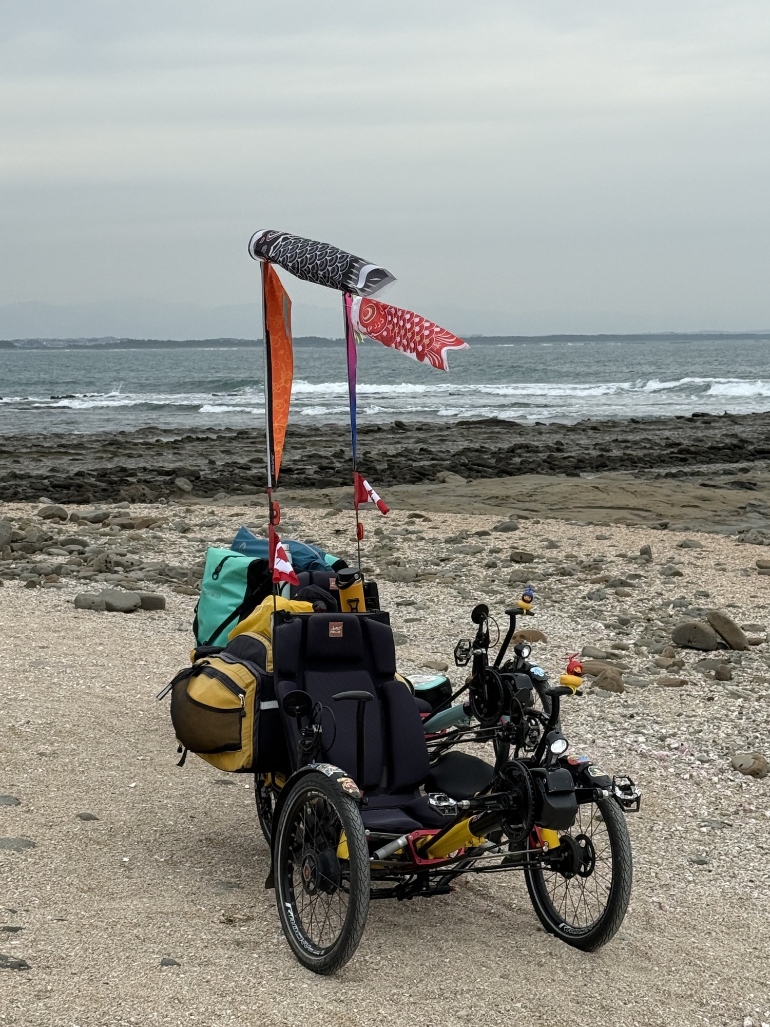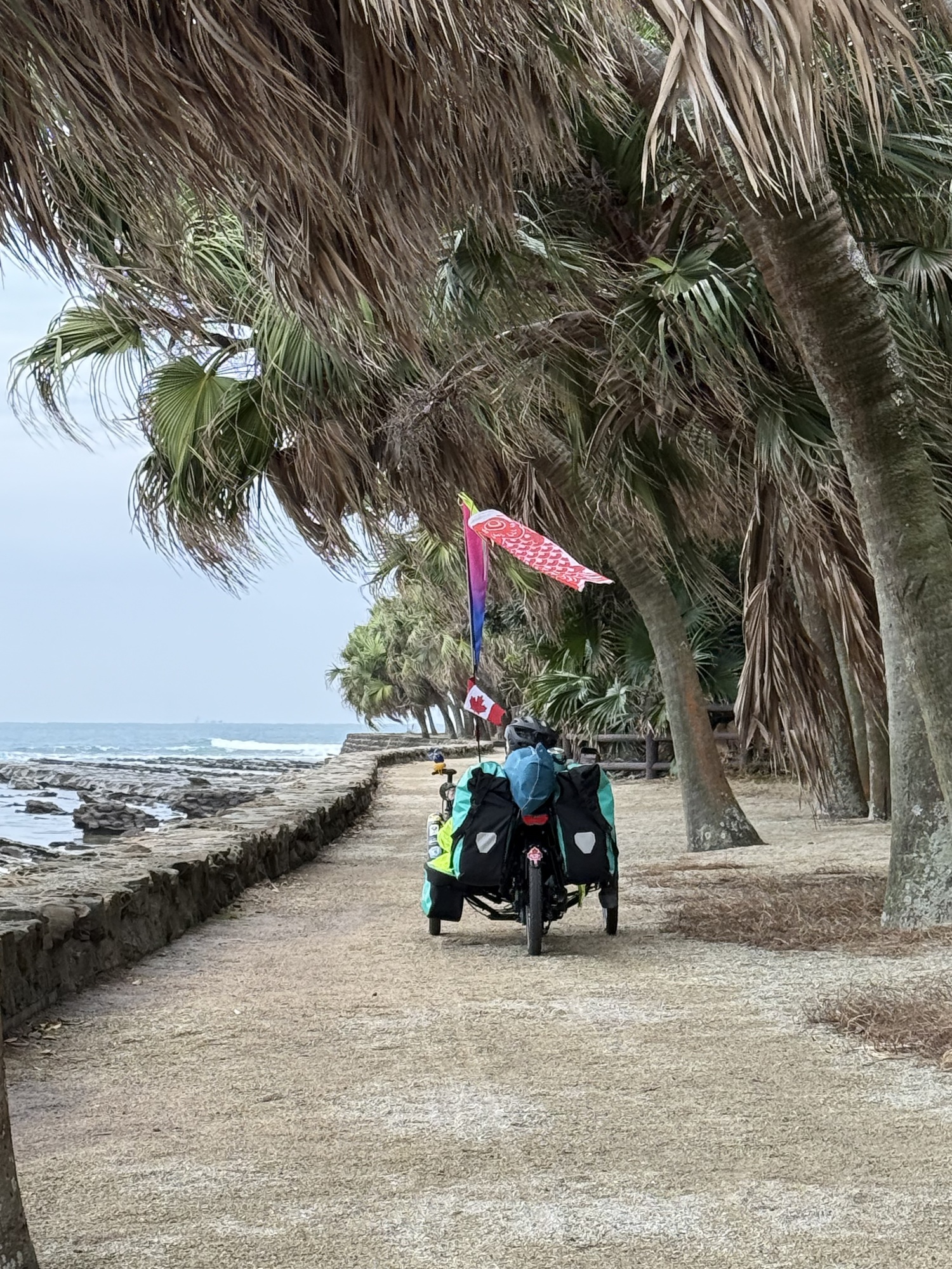 Aoshima Island is a special place. It is home to a special shrine and Japanese people flock to this island in large numbers. They walk the circumference (about 1.5 km), visit the Shrine and enjoy the island’s beauty and its position on the ocean surrounded by surfers and the crashing surf. We will be able to ride our trikes on the island.