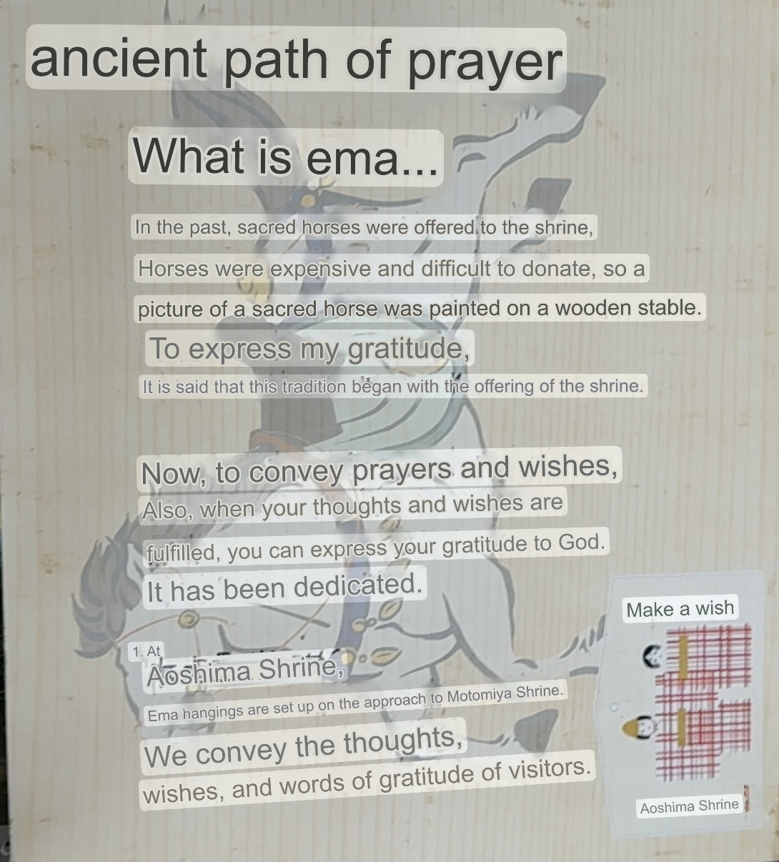 This narrow walkway is a special place as it is filled with visitors wishes which they have written on the wooden boards. This path to the rear Shri Eid called, Inori-no-Kodo, or The Road of Prayers. On the path there is a tunnel of ema…wooden plaques. There were a large number of baseball fans who expressed their wishesregarding their team.