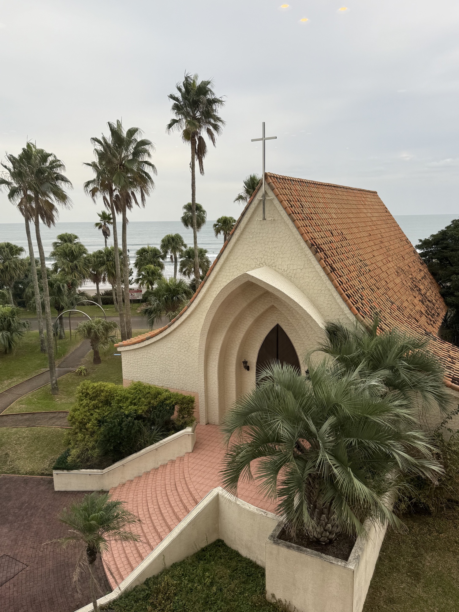 We are now staying in an older hotel with a grand history and a prime location positioned directly on the sea. The ANAHoliday Inn has grand banquet rooms and facilities for special events like weddings. This is the wedding chapel on the hotel grounds.
