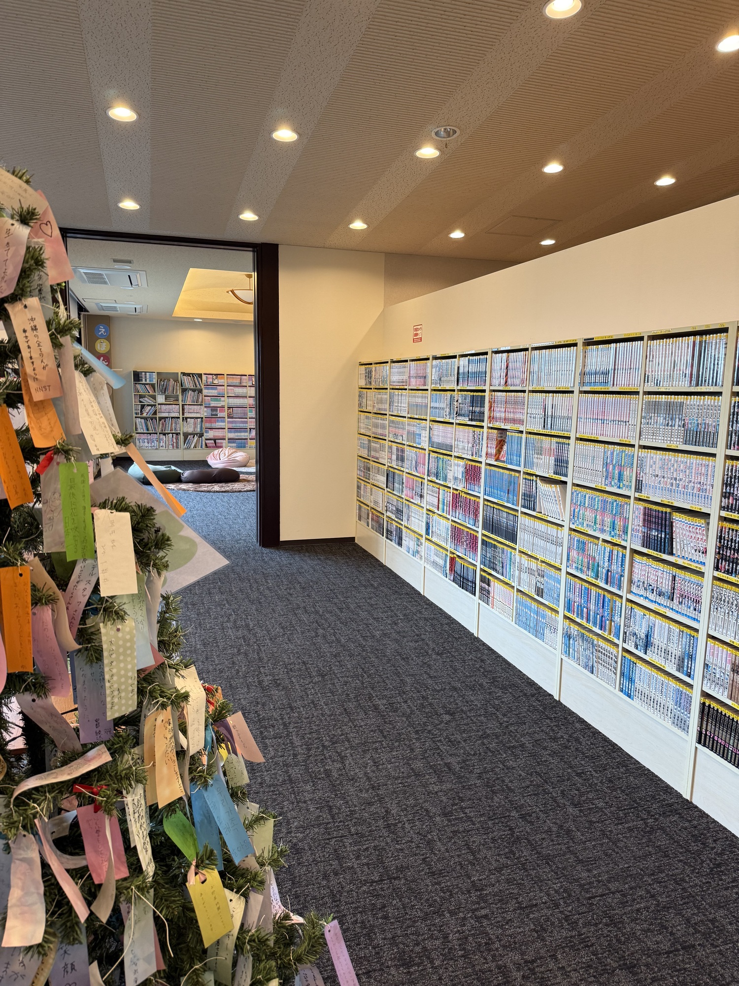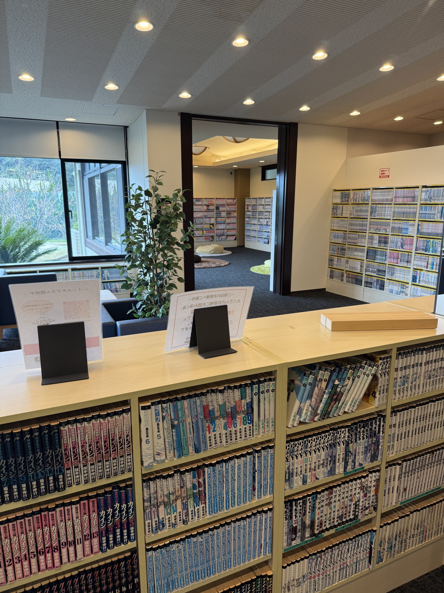 Manga books are hugely popular in Japan. The books appeal to people of all ages from childhood through adulthood. The Route Inn has a large two room library of Manga books with seating and bean bags. The room is well used by all and many take advantage of borrowing books during their stay.