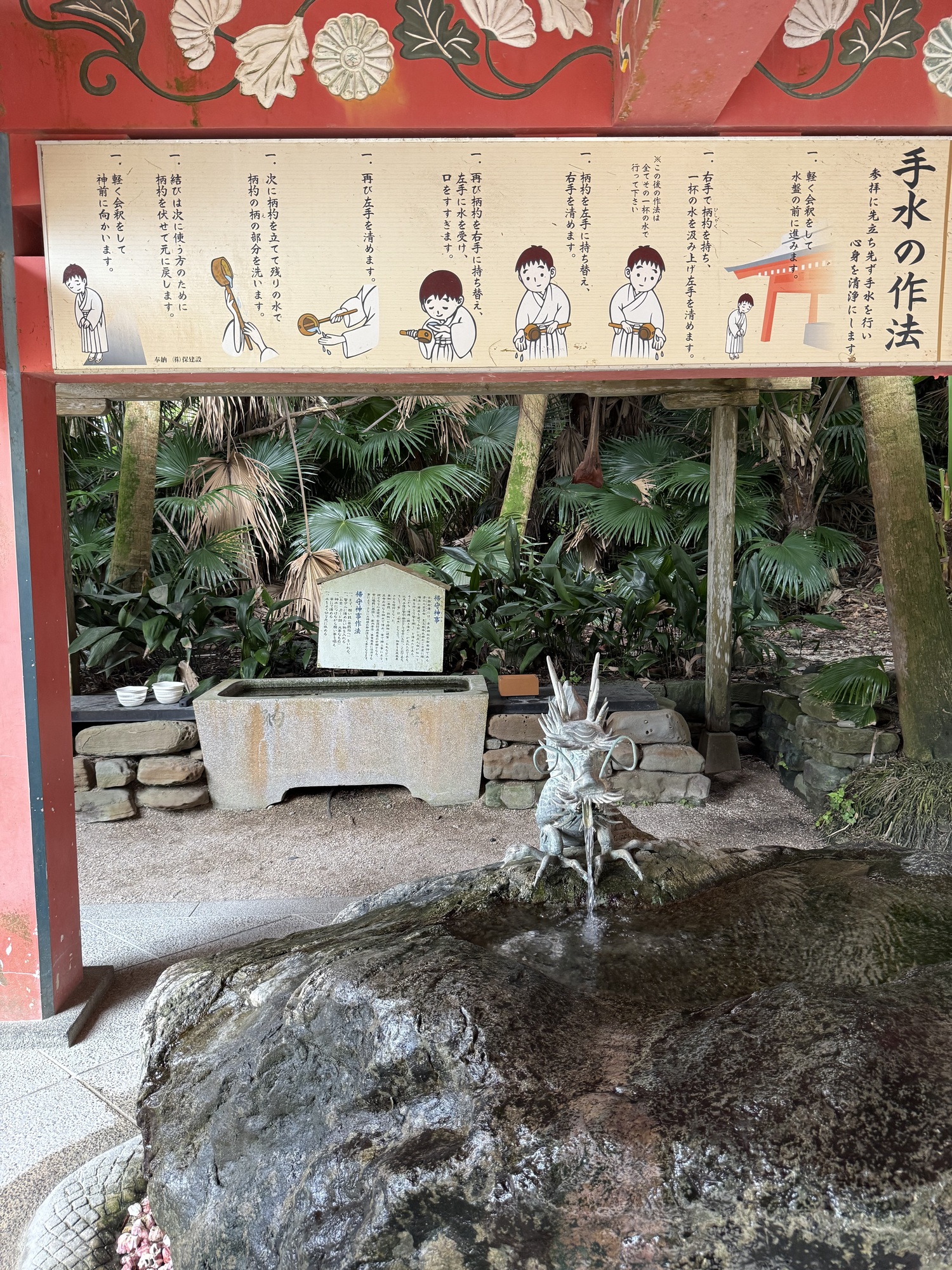 Note the panel across the top of the photo which shows you how to cleanse your hands at the shrine. We like how instructions are often given in this manner in Japan.
