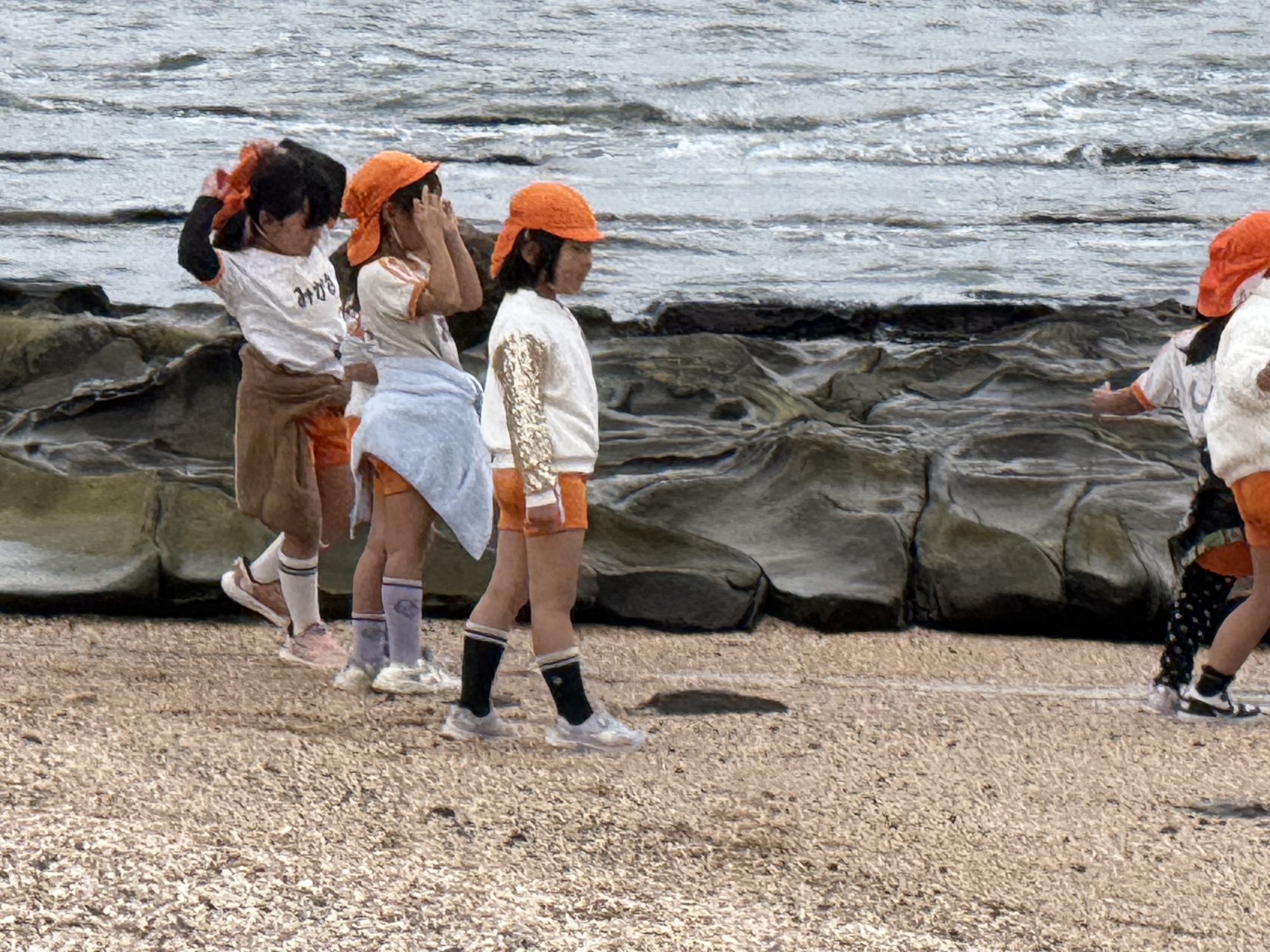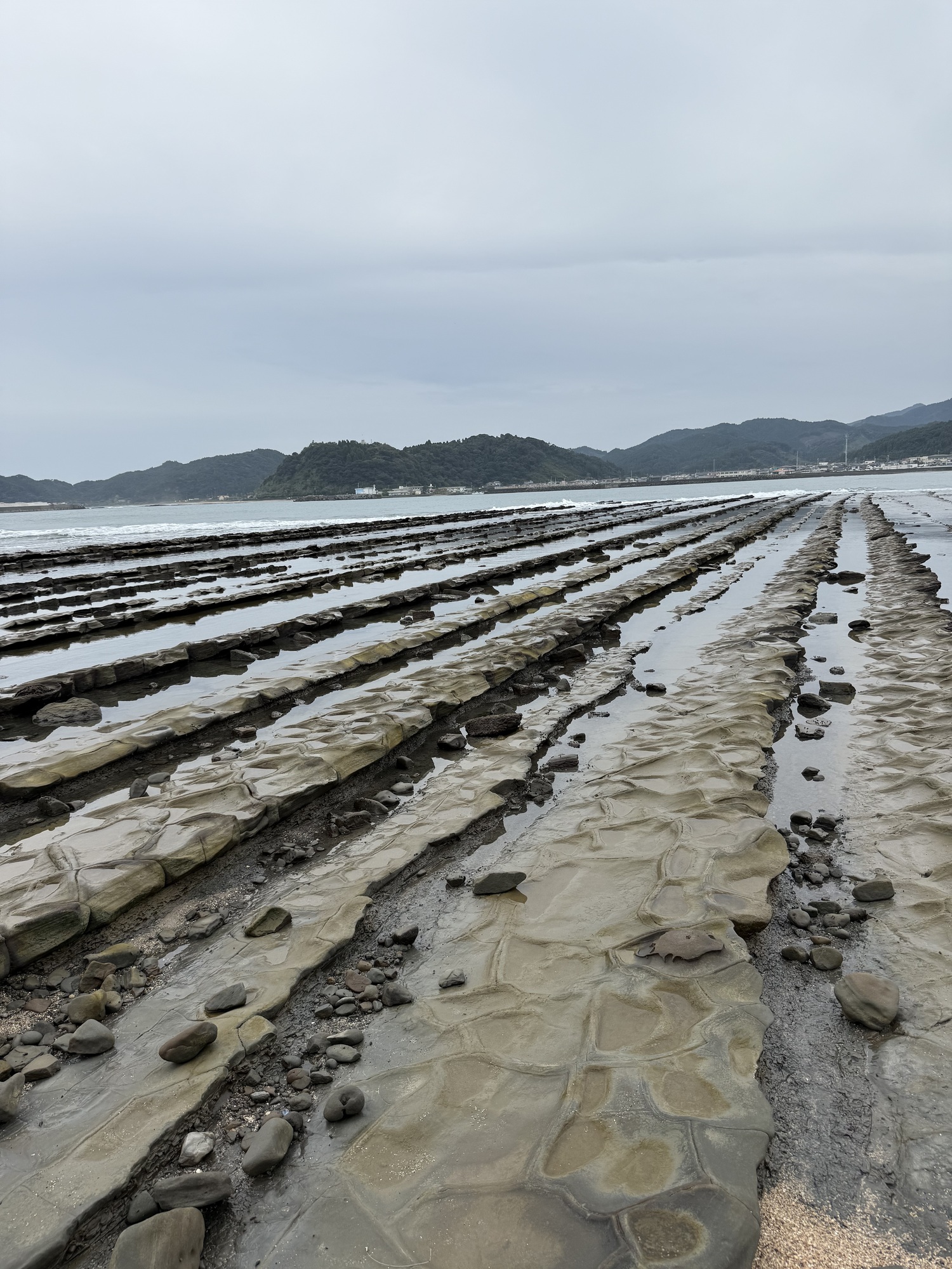 The shallow water around the island is home to washboard rocks also known as the Devil’s or Ogre’s Washboard or Oni-no-Sentaku-Ita. We were fortunate to be here during low tide as the washboard was fully exposed.