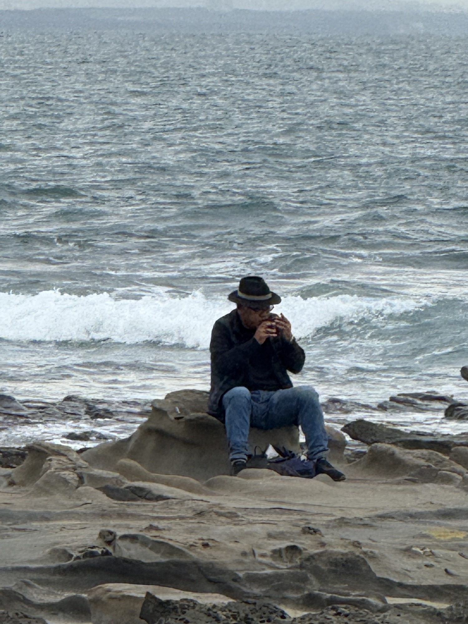 We came around the bend and were surprised to hear music which overcame the sound of the pounding surf. This fellow was playing an instrument and it made for a special moment.