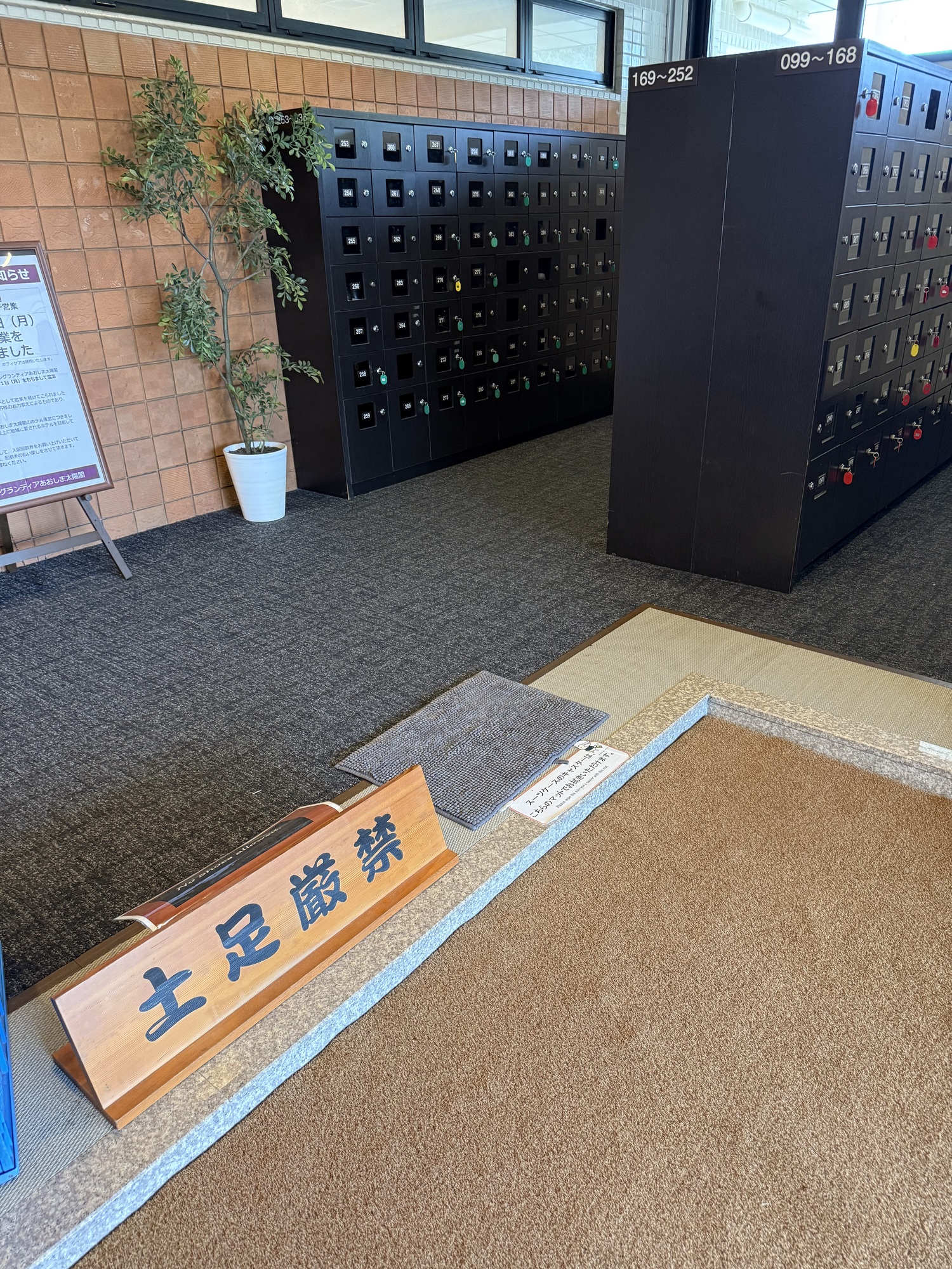 This hotel follows the Japanese tradition of not allowing outside shoes inside the building. At the entrance, lockers are provided where you store your outside shoes. Slippers are provided for you to wear inside the hotel.