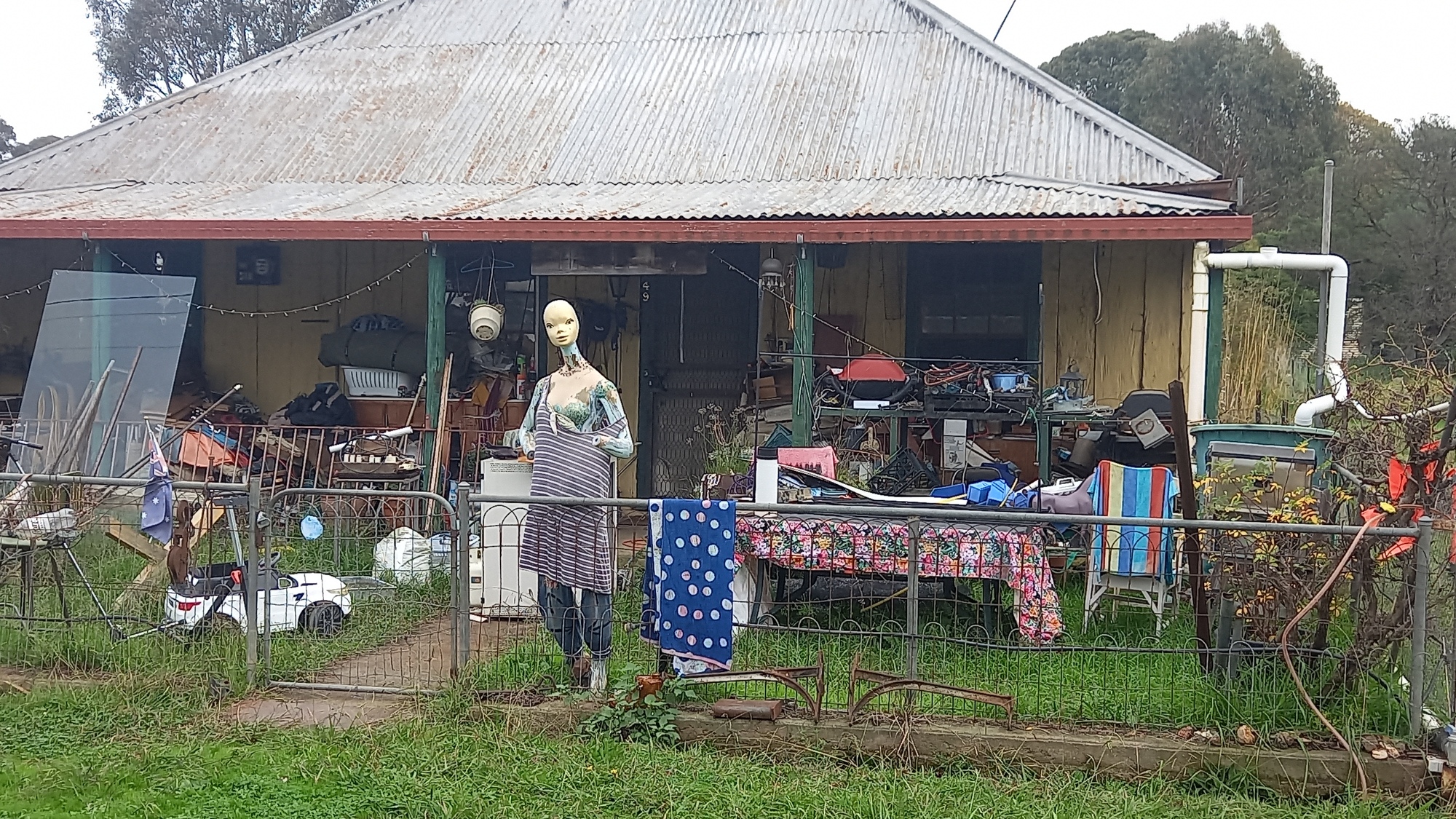 It was after 11 when we headed off looking for the road to Rye Park and our circuitous ride to Boorowa. Looked at the art under the bridge, cycled through the industrial area and the euphemism area (water treatment plant, sewage; waste transfer station, dump). It was a day with 100 g of sunshine and a kilo of wind. I was straight in to touring mode looking for camping sites, not that I needed them for days, and roadside fruit - scored some excellent apples.