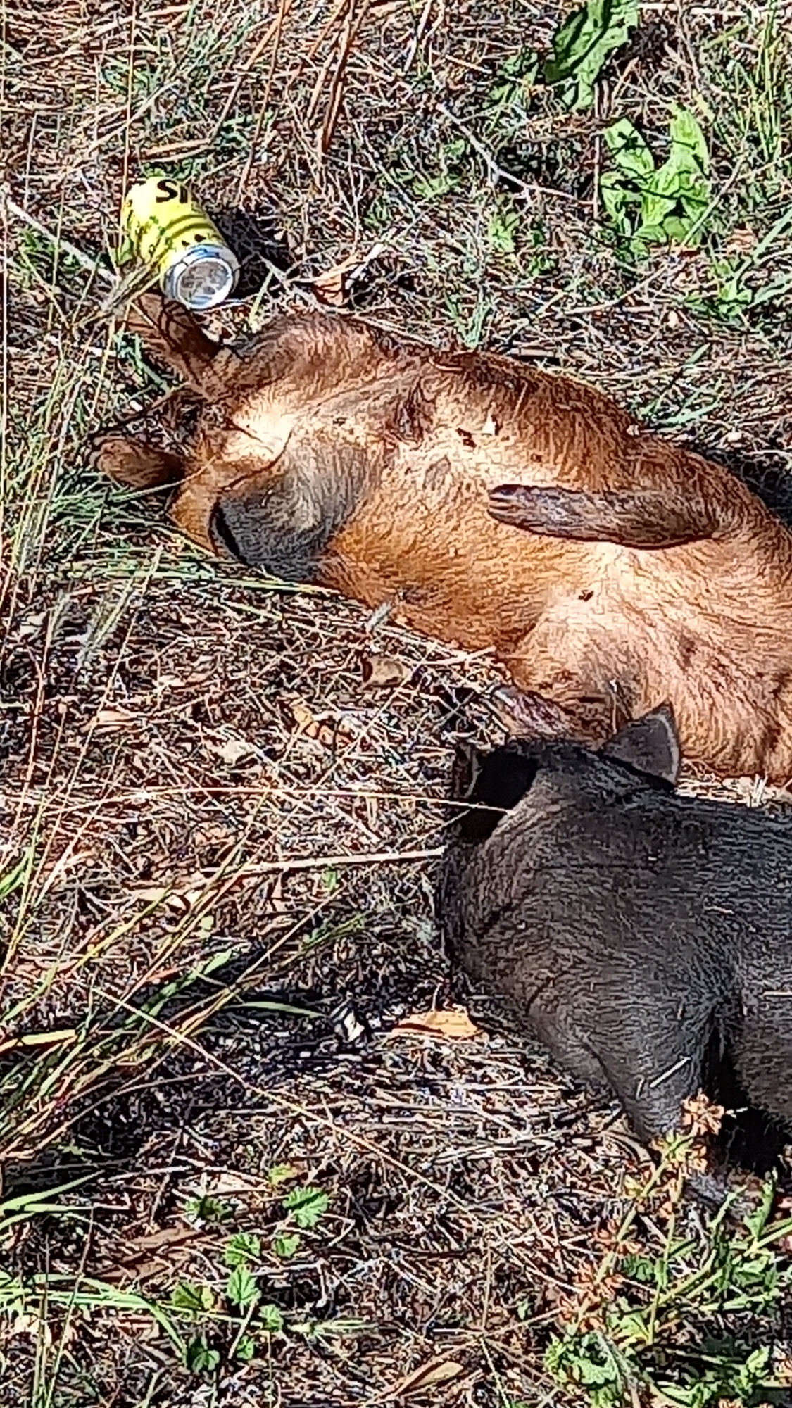 I couldn't work out the cause of death of a sow and her 10 piglets on the roadside but I did take a photo.