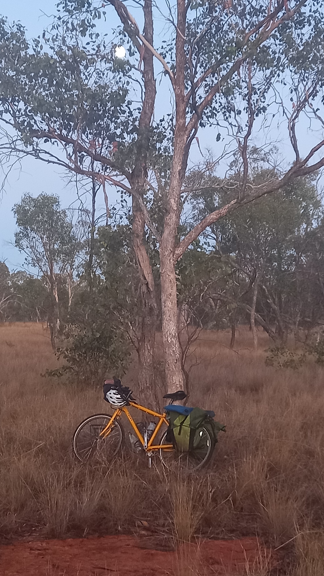 I managed 129 km, just over halfway to Cobar, before pulling in to a nice camp. Soon had a fire going so it was ready for a billy when the tent was up.